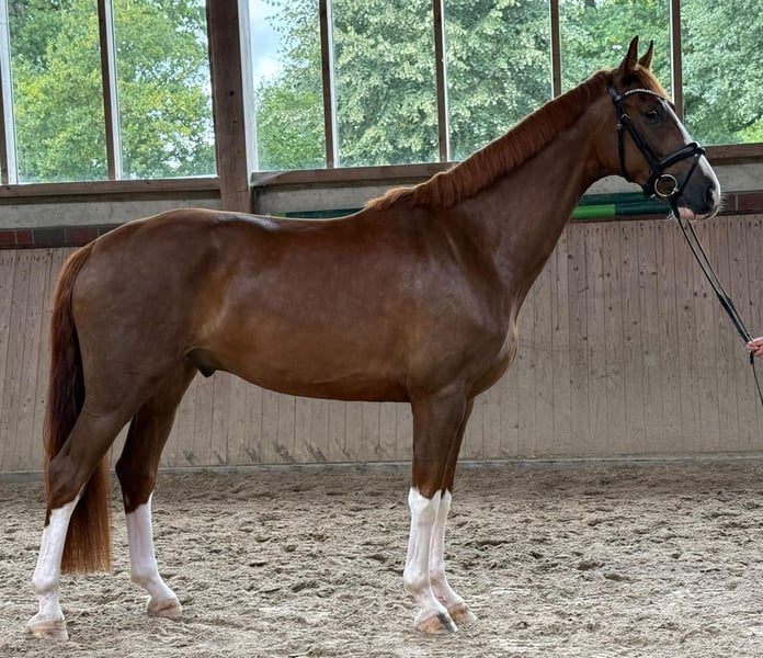 Lohriot, ein Fuchswallach aus dem Jahr 2021 von Livaldon/Falsterbo/Gelriaist, ist nicht nur optisch mit seinen vier hohen weißen Beinen ein echter Hingucker, sondern überzeugt vor allem mit seinem einzigartigen Charakter, der im täglichen Umgang Maßstäbe setzt! Mit ca.1,74m bringt dieser Kumpeltyp beste Voraussetzungen für eine erfolgreiche Zukunft als dressurveranlagter, verlässlicher Freizeitpartner mit. Was ihn besonders macht? Seine ausgeprägte Coolness, Ruhe und Rittigkeit. Egal ob im Umgang, beim Reiten oder in neuen Situationen – dieser Wallach bleibt gelassen und nervenstark. Eine coole Socke durch und durch! Dabei ist er stets ehrlich und dem Menschen zugewandt. Lohriot ist altersentsprechend, aber schonend ausgebildet, kennt Halle, Platz, Gelände, erste Sprünge und den Alltag auf dem Reitplatz. Er kommt direkt vom Züchter, zeigt sich lernbereit, kooperativ und bewegt sich mit drei guten Grundgangarten. Besonders hervorzuheben ist dabei seine raumgreifende Galoppade. Ein TüV liegt vor. Zwei Chips wurden vor seinem Anreiten entfernt. Wir wünschen uns für ihn einen Endplatz bei einem Herzensmenschen, der ein ehrliches Pferd mit herausragendem Charakter zu schätzen und zu fördern weiß! Infos unter 017621252833