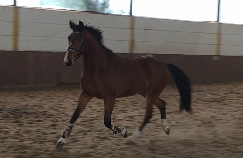 Five-year-old gelding by Grey Top – talented young horse with excellent character For sale is a 5-year-old gelding by Grey Top with top-class jumping pedigree. He is well-started and already shows great reliability under saddle. Gryffindor jumps small courses with ease, demonstrating lightness, caution, and excellent manners. He possesses a lot of scope and impresses with his overview and composure at the jump. He is also pleasant to ride in dressage, well-regulated, and consistently cooperative. Additionally, he remains calm and well-behaved in the field. In daily handling, he is very well-mannered, friendly, and uncomplicated. He gets along well with other horses, is easy to load and farrier-friendly. Thanks to his wonderful character, he is suitable both as a young prospect for show jumping and for ambitious leisure riders seeking an honest, talented horse. A recent clinical ultrasound and X-ray examination are available. A handsome, talented horse with great potential and an excellent temperament. 5-year-old Hanoverian gelding by Grey Top, 1.75 m (approx. 17.1 hh) Clinical ultrasound and X-ray reports available Video: https://youtu.be/o5Ni10fyCZ8?si=M_1gDtyBYa9ELRfm More photos, videos, and insights into our horses’ daily life can be found on Instagram: [maresi_lange]. Feel free to visit and get to know our four-legged friends beforehand. Additional horses are available on my website MaresiLange.de or upon request. Please note: The horse’s description is based on subjective impressions and experiences and does not constitute a guarantee of properties or qualities. Trial riding is at the buyer’s own risk. The sale is carried out on behalf of the owner. For the presentation and trial riding of the horse, we reserve the right to charge a fee of 30 euros, which will be deducted from the purchase price if the horse is sold.