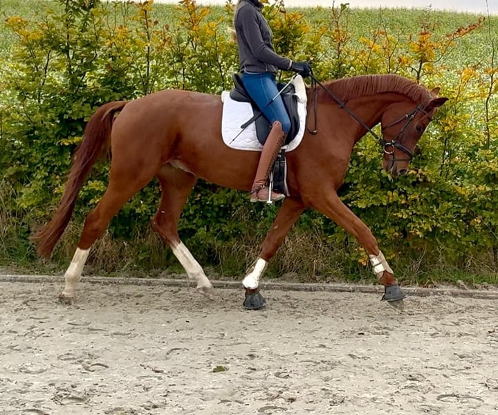 5-jarige ruin van Rockabye S x Fürst Romancier zoekt een nieuw thuis waar hij verder ontwikkeld kan worden of een trouwe partner voor de hogere vrijetijdsritten. Hij wordt onder de marktprijs verkocht vanwege een bevinding op de röntgenfoto (laminitis). Tot nu toe is hij nooit kreupel geweest of ziek geweest en reageerde negatief op de buigproef. Hij is zeer gemakkelijk in de omgang. Hij is bekend met stal, paddock- en groepshuisvesting. Hij is zeer goed te combineren met andere paarden. Momenteel rijdt hij op het niveau van Lichte Dressuur A, maar is nog niet op concours uitgebracht. Hij wordt rechtstreeks door de fokker verkocht. Röntgenfoto’s van 2024 zijn aanwezig en kunnen bij interesse worden ingezien.