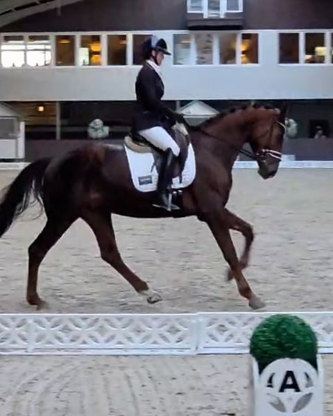 Eerste wedstrijdstart - overwinning! Dit prachtige dressuurpaard bevindt zich op een stevig niveau in Dressuurpaarden A-klasse en won overtuigend met meer dan 69 procent. De ruin heeft een aangename go en geeft een zeer goed rijgevoel. Veel perspectief, rijdbaarheid, bewegingsvreugde en goede bewegingen. Met zijn doorzettingsvermogen, goede basisopleiding en levendige karakter is het paard geschikt voor alle ambitieuze dressuurruiters. De ruin siert elke piste en zal met de juiste begeleiding zeker ook in de hogere wedstrijdklassen succesvol zijn. Betrouwbaar in de omgang en tijdens het rijden. De ruin is altijd netjes en gemotiveerd. Hij laat zich uiteraard probleemloos laden. Graag laten wij u deze prachtige dressuurruin ter plaatse zien en staan wij voor vragen altijd klaar! Neem gerust contact met ons op, ook via WhatsApp: +31 6 55 32 34 49. De ruin beschikt over een eersteklas afstamming en is een zoon van de uitzonderlijke premiehengst Maracaná (Stamboekstalling Bonhomme). Maracaná was winnaar van zijn sporttest (met cijfers van 9 en 10) en voltooide zijn 14-daagse test met droomcijfers voor zijn bereidheid en rijdbaarheid (respectievelijk 9,5 en 9,0). Hij kwalificeerde zich voor het Bundeschampionat en werd succesvol opgeleid tot M-dressuur (meerdere 10-en voor zijn doorzettingsvermogen). De hengst overtuigt met zijn natuurlijke bewegingskracht en elasticiteit, zijn actieve, krachtige achterbeen en zijn correcte exterieur. Inmiddels staat Maracaná in de dekdienst in Australië. Afkomstig uit de succesvolle Hannoveraanse merriestam Schildamsel.
