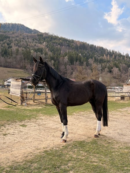Stunning 5-year-old black gelding with top bloodlines – a dressage prospect for the big arena! For sale is an impressive 5-year-old black gelding standing approximately 17.5 hands. This elegant gelding captivates with his exceptional presence, three above-average gaits, and a commanding presence under saddle. He is currently trained at a solid Basic to Advanced dressage level and consistently demonstrates willingness to work, eagerness to learn, and rideability. As varied gymnastics, he has also been worked over small jumps up to about 3 feet, which he handles with confidence and enjoyment. ✨ Particularly noteworthy is his first-class pedigree: Vitalis × Fürst Romancier – a highly interesting combination of proven dressage sires, known for quality movement, rideability, and talent. This young black gelding combines type, size, movement, and pedigree, making him a very promising horse for ambitious riders seeking a young dressage horse with potential. Serious inquiries are welcome via message.