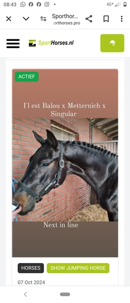 Ruin with quality, competed as a 2.5-year-old in the 3rd class with free jumping. What more could you wish for? Ready to mount and ride away. Videos available on YouTube: bc-stables.nl info 📞 +31 620030412 Price excluding VAT