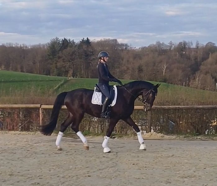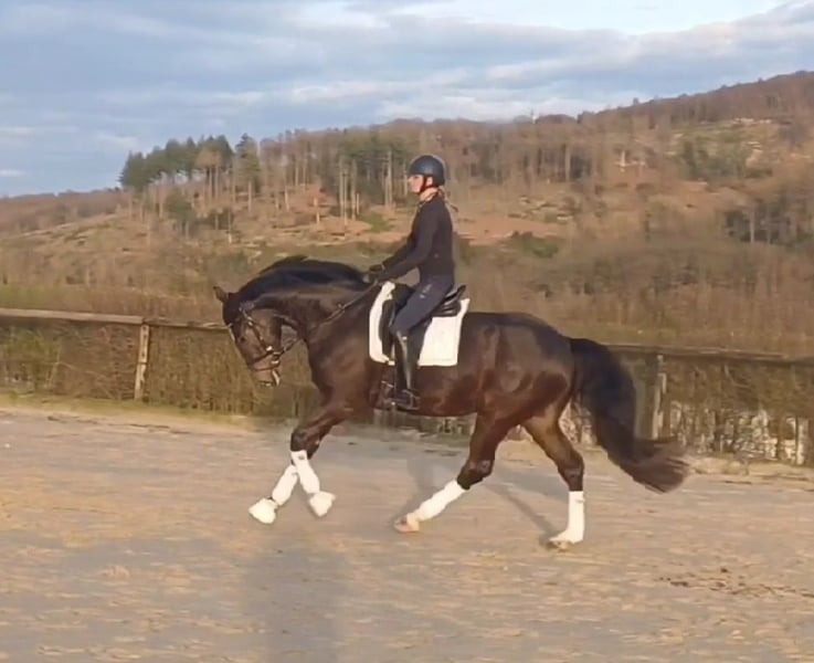 For sale here is an extraordinarily great horse for sport, which is well suited for dressage, as well as for show jumping, with a flawless exterior and interior. The handsome, 4 year old gelding was ridden by myself in January, in April/May he got a break, and was then further trained by me. He is always extremely well-behaved under the saddle, as well as in handling. He is a bit skeptical of strangers and men at first. After a short time, however, this subsides, and then they also cuddle with men. Overall, he is a very cuddly and absolutely uncomplicated horse. The dear gelding is very beautiful and easy to ride, to sit well, has very nice basic gaits and makes a very good jump. He learns incredibly fast and is very motivated. He is currently being examined, and 14 X-rays have also been taken. All without findings. AKU available. Selling on behalf. If you have any further questions, please call: 49170-9 333 000
