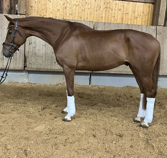 Zum Verkauf steht ein talentierter Hannoveraner Fuchs-Wallach, geboren 2020, mit vier weißen Beinen. Der Wallach ist aktuell ca. 170 cm groß und befindet sich noch im Wachstum. Er überzeugt durch seine sehr gute Arbeitseinstellung, Intelligenz und Lernbereitschaft. Dabei zeigt er sich stets motiviert und aufmerksam unter dem Sattel. Mit angenehmem Go, guter Rittigkeit und viel Qualität ausgestattet, bringt er beste Voraussetzungen für den Dressursport mit – sowohl für ambitionierte Reiter als auch für engagierte Nachwuchsreiter mit Unterstützung. Besonders hervorzuheben ist sein freundliches und menschenbezogenes Wesen. Er ist sehr verschmust, genießt die Aufmerksamkeit und baut eine enge Bindung zu seiner Bezugsperson auf. Erfolge & Ausbildung • Dressurpferde A gewonnen • Dressurpferde L ausgebildet Er ist altersgerecht gefördert, zeigt sich lernwillig und gibt seinem Reiter ein gutes Reitgefühl. Mit weiterer Förderung ist er ein vielversprechender Partner für den gehobenen Dressursport. Gesundheit • Großer TÜV inkl. Röntgenbildern aus 12/2025 ohne Befund Ein ehrliches, talentiertes Pferd mit Perspektive, das bei entsprechender Anleitung auch Nachwuchsreitern viel Freude bereiten wird.
