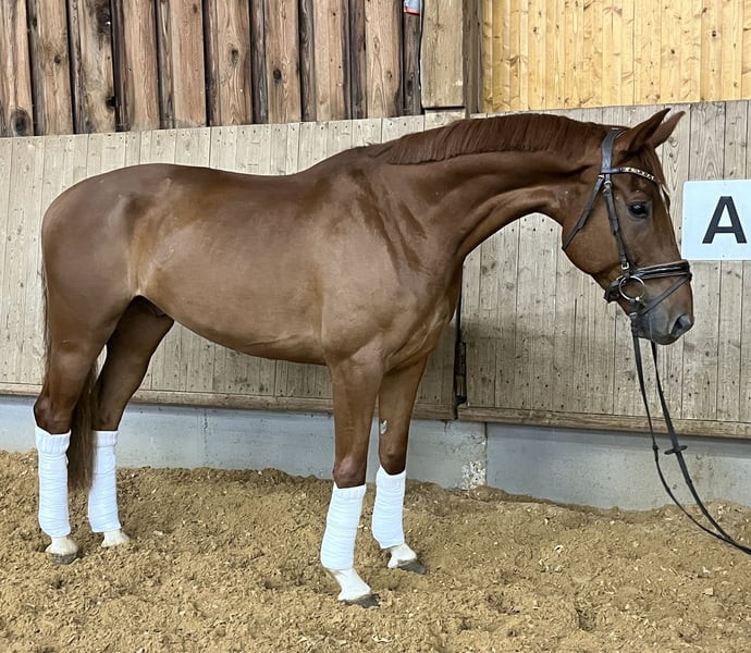 For sale is a talented Hanoverian chestnut gelding with four white legs, born in 2020. The gelding is currently approximately 16.1 hh and still in growth. He impresses with a very good work attitude, is intelligent, eager to learn, and always motivated during training. Equipped with plenty of go, rideability, and quality, he is a horse for the big arena and offers excellent potential for advanced dressage competition. Achievements & Training - Winner of Dressage Horse Class A - Trained in Dressage Horse Class L Health - Comprehensive TÜV including X-rays from December 2025 with no findings An honest, ambitious sport partner with a clear future outlook. Due to his temperament and sensitivity, he is not suitable for beginners but ideal for ambitious riders or professionals.