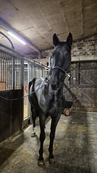 Gaspino has been trained gently and is now ready for new challenges. He has multiple placings in Jumping Horse Classes A and L and is experienced and reliable at competitions. He is more of a relaxed type who doesn't get easily flustered. Currently, he confidently jumps a 1.20m course and is ready for Jumping Horse M level. He enjoys daily work and rides calmly alone or in a group in the terrain. A fantastic partner for starting out! With proper support, he is also suitable as a children's horse or for less experienced riders. He is naturally shoe- and loading-safe. He is familiar with children, dogs, tractors, and gets along well with other horses. His siblings from the dam have been placed up to 1.50m. Recent X-ray TÜV is available without findings.