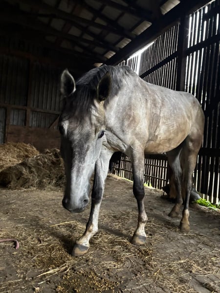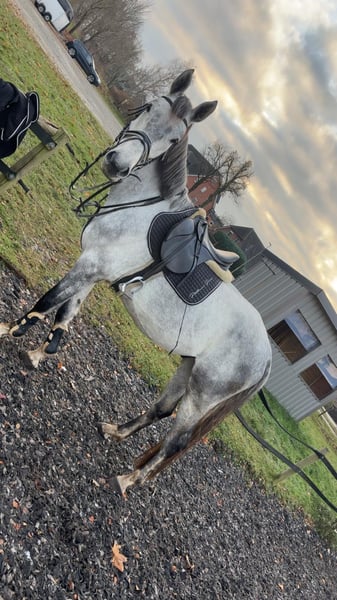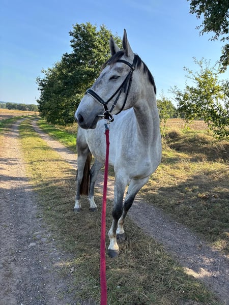 Beautiful Hanoverian gelding for sale – perfect for leisure and hobby riding! This elegant, tall gray from 2020 impresses with its friendly nature. The gelding is very gentle to handle, is familiar with tractors, cars, and dogs, and remains relaxed in all situations. His pleasant demeanor makes him a loyal companion for hack outings, walks, and relaxed hours in the countryside. He has been trained according to his age, but due to a veterinary diagnosis of the central phalanx, he is not suitable for sport. Therefore, I am ideally looking for a companion or a home with very light, gentle use. If you are interested or have further questions, please feel free to contact me. A viewing can be arranged by appointment.