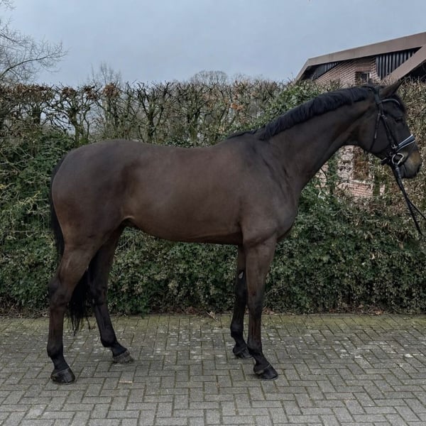 Six-year-old Hanoverian gelding seeking a new environment to develop his potential. He impresses with his modern conformation, three outstanding basic gaits, and great potential for higher levels. Fusionist is a movement-rich dressage horse with excellent rhythm and a lot of expression. In daily training, he delights with his eagerness to learn, willingness to perform, and fearless nature. He is currently being introduced to the movements of the M-level and is mastering them more and more confidently. Flying changes are already quite secure! A handsome young gelding that will bring joy to both professional riders and ambitious amateurs. In handling, he is uncomplicated, shoe- and loading-trainable. Healthy, rideable, and eager to learn, he is ready for his new owners. A promising dressage prospect with championship potential – prepared for supportive hands in advanced sport. Location: Ahaus, Germany – trial rides available. For further inquiries: +43 67683414227