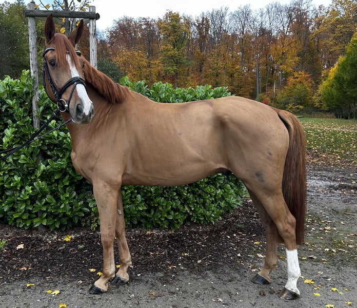 **Sale ad: Elegant Hanoverian gelding for sale** We are offering a beautiful Hanoverian gelding for sale that was born in 2017. This impressive chestnut not only impresses with his elegant appearance, but also with his excellent movements and talent in dressage. **Characteristics:** - Breed:** Hanoverian - **Sex:** gelding - Year of birth:** 2017 - **Color:** chestnut - Height:** 165 cm - **Discipline:** Dressage This gelding is a real eye-catcher and shows great potential for dressage. He is well trained, willing to work and has a balanced character, which makes him the ideal partner for ambitious riders. If you are looking for a talented dressage horse that is convincing both in the dressage arena and in everyday handling, then this Hanoverian gelding is just right for you. For more information or to arrange a viewing, please do not hesitate to contact us. We look forward to presenting this wonderful gelding to you in person. We charge 30 euros for a test ride.