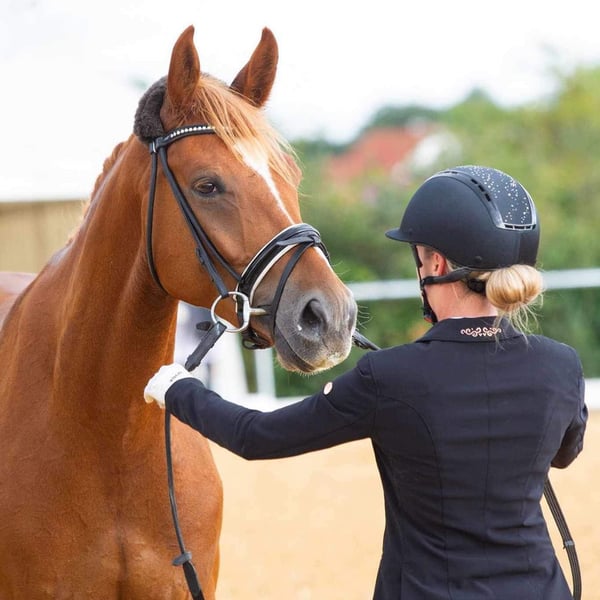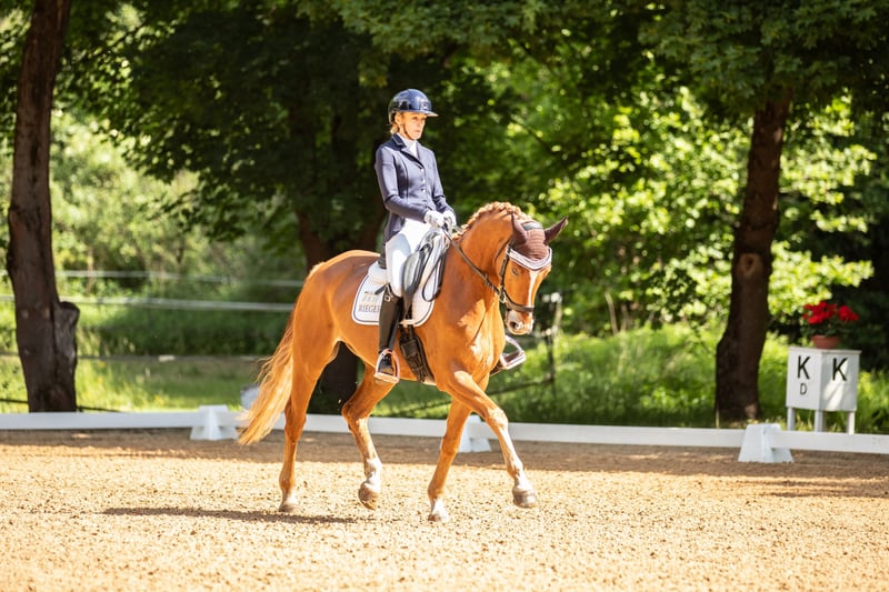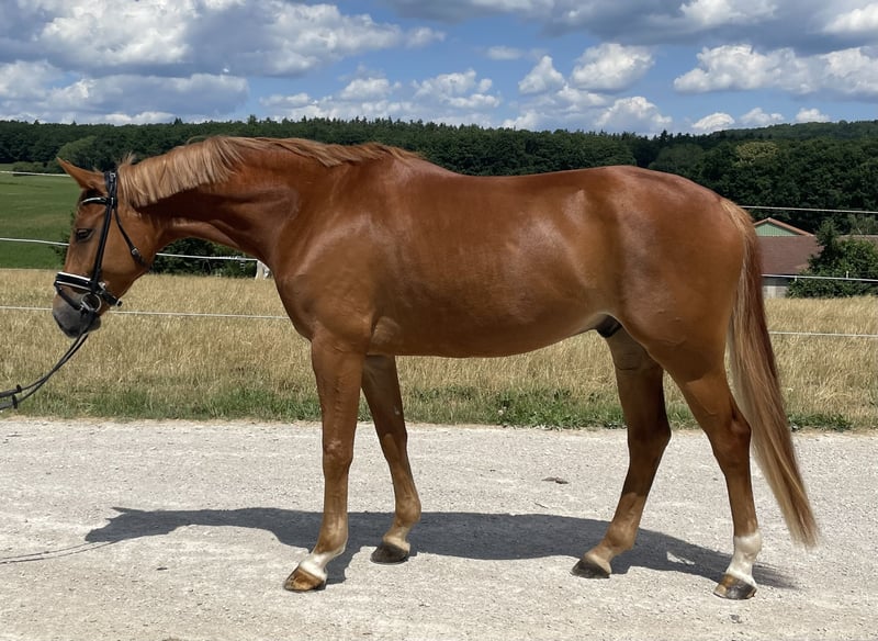 Stunning 6-year-old Hanoverian gelding with excellent basic gaits and an exceptional temperament ✨ Sired by top breeding stallions Escamillo and Dancier. He was backed at four and competed in his first show season in 2024, winning classes in dressage horse A and L. In 2025, he secured victory in dressage horse L and placed in dressage horse M and Kandare L**. His highlight qualities include a lively, elastic trot and an above-average walk. Emilio is an incredible partner in handling—very affectionate and well-behaved, always calm and steady nerves. He is equally comfortable riding alone or in a group in the terrain, performs just as well at competitions as at home, and loads effortlessly into any horse trailer or truck. He is also reliably well-behaved with the farrier and veterinarian. A recent TÜV inspection from 2023 with no findings is available.