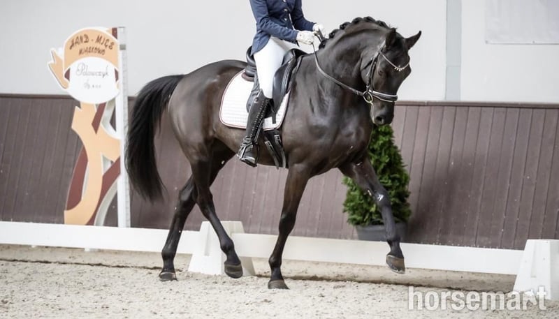 Rzadkie znalezisko z Europy – idealne dla ambitnego amatora lub rozwijającego się profesjonalisty Wzrost: 167 cm Kolor: Czarny Linie krwi: • Ojciec: Finest • Matka: Stella Dlaczego się wyróżnia: Ten hanowerski wałach oferuje potencjał jutra już dziś. Łączy: • Trzy ekspresywne, czyste chody • Naturalny kontakt i uwagę na jeźdźca • Łatwość w treningu i stabilność psychiczna Obecnie pracuje na poziomie Klasy P, już pokazując się w zawodach: 73% w Klasie L na regionalnych pokazach — młody, ale już udowadnia swoją wartość na ringu. Prawdziwa wschodząca gwiazda, która będzie rozwijać się razem z jeźdźcem. Charakter i zachowanie: • Inteligentny, odważny i niepłochliwy — spokojny w nowych środowiskach • Przyzwyczajony do psów, stajni i transportu • Grzeczny dla kowala, reagujący w pracy z ziemi • Zrównoważona energia — wrażliwy i skoncentrowany bez napięcia Wszystko dostępne do obejrzenia i wypróbowania, jeśli możesz przyjechać na stajnię. Potencjalni nabywcy muszą przesłać nam przez WhatsApp filmik ze swoimi umiejętnościami jeździeckimi pod numer - Kliknij tutaj, aby ujawnić numer telefonu - a my ocenimy odpowiedniość. Dostępna wysyłka na całym świecie, prosimy o kontakt w celu uzyskania wyceny.