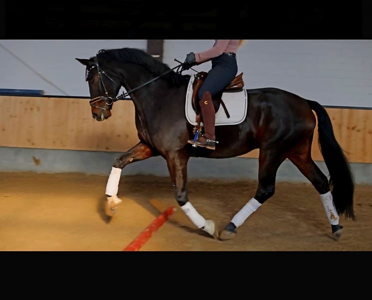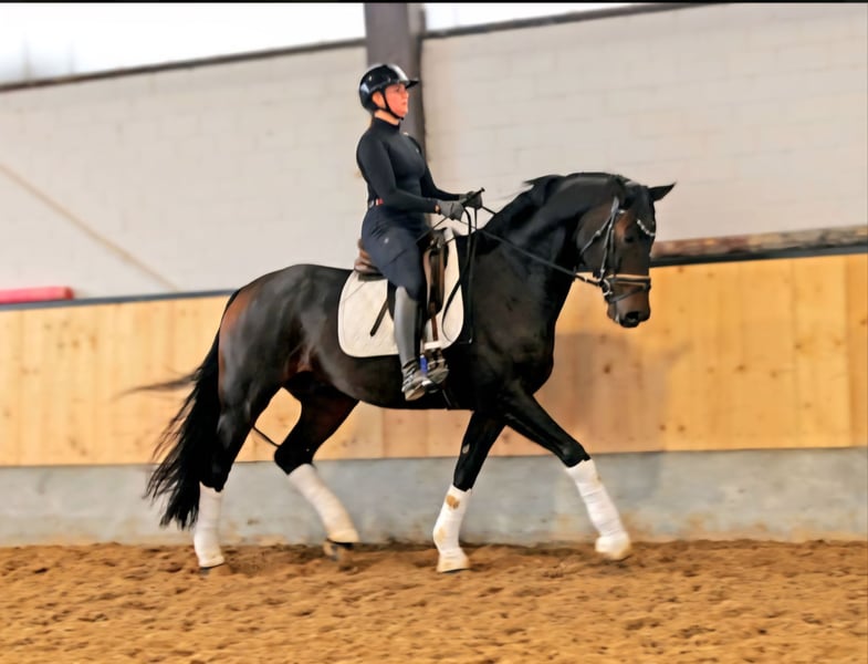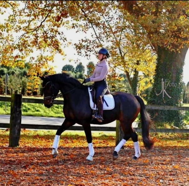 Dieses Bild von einem Pferd zucht seinen Herzensmenschen. Bereits L platziert überzeugt dieser super schicke Kerl mit 3 sehr guten GGA und einem dem Menschen sehr zugewandten Charakter. Er möchte immer dabei sein und freut sich über jede Art von Zuwendung. Dressurcideo unter: 0177 275 9886 Ein entspanntes Video Youtube: https://youtube.com/shorts/oFCtxmJSHEM?si=ibQr4Eoc28Inq3It Er ist problemlos in der Box mit täglichem Weidegang zu halten, kennt aber seit seiner Geburt auch Offenstallhaltung. Er kennt Ausritte genau so wie Stangenarbeit und kleine Sprünge. Er wird hier auch mit Pad geritten und macht das sehr artig. Auf dem Video noch ohne Eisen, seit kurzem Beschlagen. Bei seiner Besitzerin war verladen um zur Halle zu fahren an der Tagesordnung. Gern geben wir Ihnen weitere Infos : 0177 275 9886