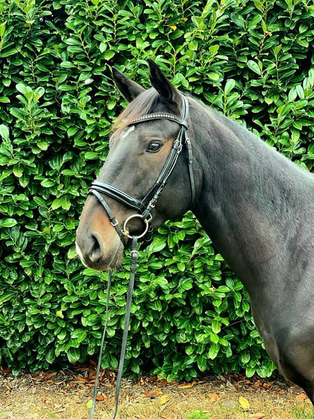 Scardoushe is a 6-year-old gelding who impresses with his work ethic and jumping talent. He was lightly backed at age three and then spent the summer grazing on pasture. At four, he returned to work and already achieved successful placements at competitions that year. As a five-year-old, he earned good results in Sire Horse classes A and L. Now at six, he is already placed in M-level show jumping. Not only does Scardoushe perform well in competitions, but he also impresses in daily work and handling. He is always well-behaved and eager to do his best. He is accustomed to hacking both in groups and alone. He also rides easily with less experienced riders. A recent TÜV from 2022 is available.
