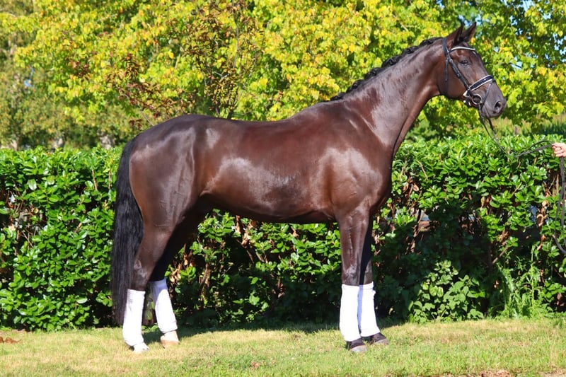 Findus B è un cavallo di taglia grande, elegante e di colore nero lucido che sa presentarsi in modo eccellente in tutte e tre le andature di base. Nel frattempo, Findus ha ricevuto un ulteriore addestramento ed è in procinto di entrare in classe di dressage. Direttamente dall'allevatore.