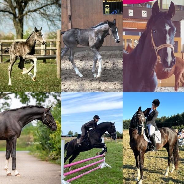Escaniro, nato e cresciuto da me, è stato fin da subito un piccolo affascinatore. È maneggiabile dai bambini, si lascia addestrare molto facilmente, ha un cuore enorme e una fiducia incredibile negli esseri umani. Sa fare di tutto, ma è sempre stato montato con delicatezza e ha avuto anche delle pause al pascolo. Ha 4 anni ed è piazzato DRP-A; poiché non sono un’amazzone da concorso, è stato solo due volte in gara, ma ha affrontato tutto alla grande, nonostante fosse stato appena montato. È stato con me a fiere, spettacoli, in spiaggia, ecc. Conosce bene le escursioni. Non è solo a suo agio nel dressage, ma sa anche lavorare in libertà, montare con la cavezza, eseguire diverse lezioni di circo, ti segue in stalla, va anche con i bambini in escursione, conosce il traffico stradale, trattori e simili. Salta un piccolo percorso senza problemi e ha già fatto esperienza in un campo di cross, dove ha superato tutti gli ostacoli senza battere ciglio. Non lascia davvero desideri inappagati ed è incredibilmente calmo e rilassato per la sua età. Tuttavia, quando viene montato, non è pigro, ma ha un temperamento molto piacevole. Non conosce affatto il ribellarsi, il saltare o altre cattive abitudini. È cresciuto in un paddock all'aperto ed è abituato a vivere in branco con altri stalloni. Anche attualmente e per tutta la sua vita, vive all'aperto sia in estate che in inverno. Ha già a disposizione radiografie senza referti, compresa quella della schiena. Desidero per lui una casa da sogno assoluta. È un cavallo molto speciale per me, ma purtroppo non posso tenerli tutti. Sono maestra di economia equina SP Riding; se sei interessato al mio lavoro, puoi trovarmi su Instagram -> hello_horses_official_.