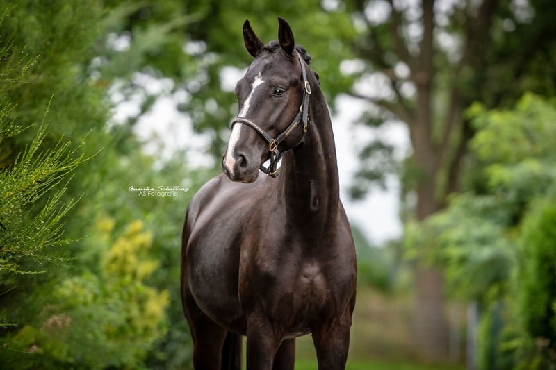 Escaniro, bei mir geboren und aufgewachsen, war er von Anfang an ein kleiner Charmeur. Dieses Pferd wird nur in ein absolutes Traumzuhause verkauft! Keine Eile, mehrfaches ausprobieren erwünscht! Er ist von Kindern zu händeln, lässt sich ganz leicht ausbilden, hat ein riesengroßes Herz und unglaublich viel Vertrauen zum Menschen. Er kann alles mögliche, ist aber trotzdem immer schonend geritten worden und hat auch immer mal wieder Pause auf der Weide machen dürfen. Er ist 4-jährig DRP-A platziert, da ich keine Turnierreiterin bin ist er nur zweimal auf dem Turnier gewesen, das hat er, wie alles andere auch super gut gemeistert, obwohl er gerade erst angeritten war. Er war mit mir auf Messen, Shows, am Strand, etc. Ausflüge kennt er zur Genüge. Er ist nicht nur in der Dressur zuhause, sondern kann Freiarbeit, Halsringreiten, verschiedene Zirkuslektionen, er läuft einem auf dem Hof hinterher, geht auch mit Kindern ins Gelände, kennt Straßenverkehr, Trecker & Co. Einen kleinen Parcours springt er problemlos, sogar auf dem Geländeplatz war er bereits, wo er auch alle Hindernisse ohne mit der Wimper zu zucken überwunden hat. Er lässt wirklich keine Wünsche offen und ist für sein Alter wahnsinnig ruhig und entspannt. Trotzdem ist er beim Reiten nicht faul, sondern hat auch hier ein sehr angenehmes Temperament. Bocken, steigen, oder sonstige Unarten kennt er absolut gar nicht. Er ist robust im Offenstall aufgewachsen und kennt Herdenhaltung mit anderen Wallachen. Auch aktuell und schon sein ganzes Leben steht er Sommer, wie Winter draußen. Er hat bereits Röntgenbilder ohne Befunde inklusive Rücken vorliegen. Ich wünsche mir ein absolutes Traumzuhause für ihn. Er ist ein ganz besonderes Pferd für mich, aber ich kann sie leider nicht alle behalten. Ich bin Pferdewirtschaftsmeisterin SP Reiten, wenn Sie sich für meine Arbeit interessieren -> hello_horses_official_ auf Instagram.