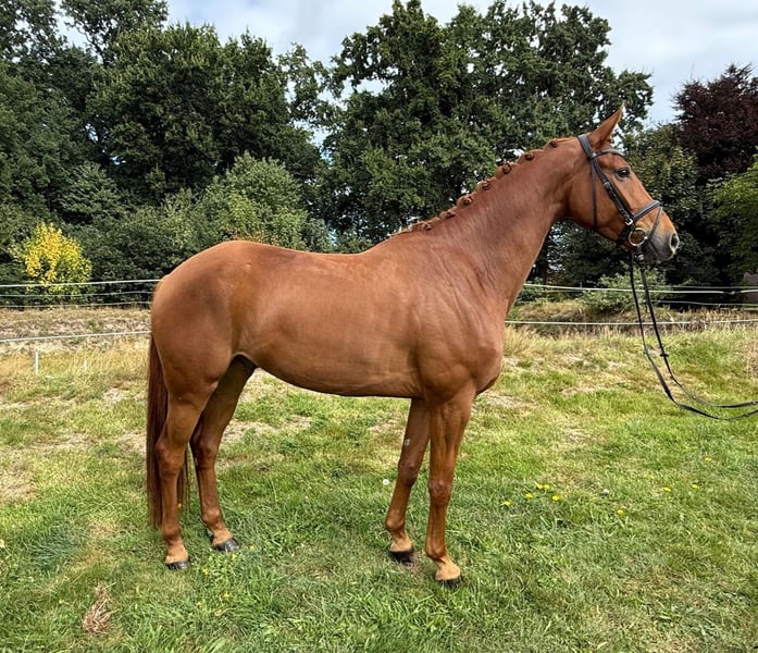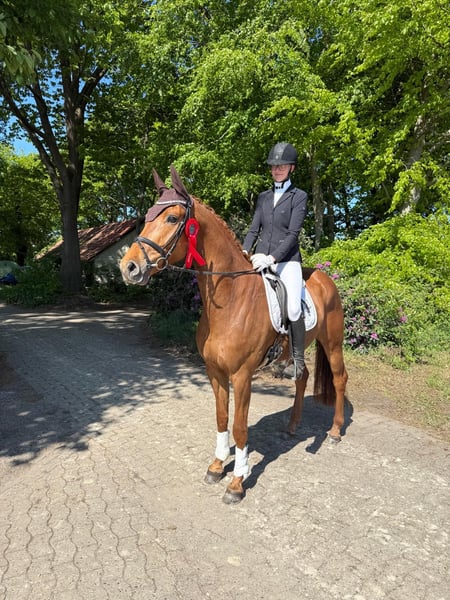 Wir verkaufen unseren 6-jährigen selbstgezogenen Wallach von Zackerey x Fürst Nymphenburg mit einem Stockmaß von 170 cm. Zampano wurde bei uns geboren und wurde 4-jährig angeritten. Seitdem wird er gewissenhaft ausgebildet. In seiner ersten Turniersaison in diesem Jahr konnte dieser typvolle Wallach durch seine drei hervorragenden Grundgangarten direkt mehrfach glänzen und tolle Platzierungen abräumen. Aus der Dressurpferdeprüfung Kl. A konnte er unter anderem zwei Mal mit einer Traumnote von jeweils 8,2 als Reservesieger hervorgehen. Zampano ist ideal für Reiter, die auf der Suche nach einem leistungsstarken Partner für den Dressursport und gleichzeitig liebevollen Freund für die Zukunft sind. Er zeigt viel Potenzial und ist bereit, auf Turnieren alles zu geben. Im Training sind die Lektionen der Kl. L abrufbar und er springt bereits spielerisch die ersten Wechsel. Selbstverständlich kennt er das Verladen und ist brav beim Schmied. Auf unserer Homepage www.dressurpferde-le-ni.de finden Sie ein Video. Wenn der hübsche, bewegungsstarke Wallach Deine Aufmerksamkeit erregt hat, melde dich gerne unter 015146542177.