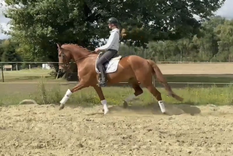 We are selling our 6-year-old home-bred gelding by Zackerey x Fürst Nymphenburg with a height of 170 cm. Zampano was broken in as a 4-year-old and trained conscientiously last year. He has three excellent basic gaits and will shine in the big arena in the future. Zampano is ideal for experienced riders who are looking for a powerful partner for dressage. He shows a lot of potential and is ready to shine at competitions. It goes without saying that he knows how to be loaded and is well-behaved at the farrier. You can find a video on our homepage www.dressurpferde-le-ni.de. If this handsome gelding with great movement has caught your attention, please contact us at 015146542177.