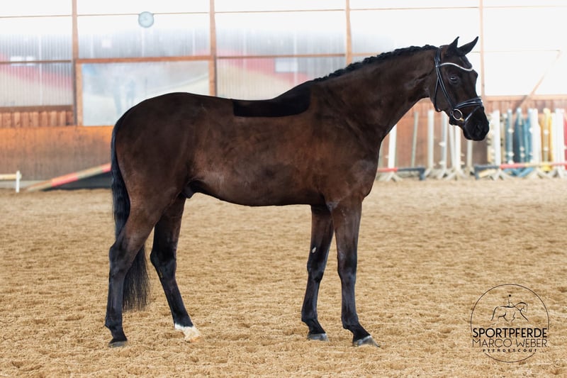 Hannoveraner | Wallach | *2019 | ca. 1,72 m ⚜️ Asgard’s Ibiza – Sezuan – Rubin Cortes ⚜️ 🖤 Ein Traum in Schwarz 🖤 Dieser äußerst typvolle, im mittleren Rahmen stehende Nachwuchswallach zieht einen vom ersten Moment an in seinen Bann – mit Ausdruck, Qualität und einem besonders charmanten Wesen. Dazu ist er einfach wunderschön anzusehen. Bewusst spät in den Sport gestartet und erst fünfjährig schonend angeritten, durfte er sich in Ruhe entwickeln – genau das zahlt sich heute aus. Er zeigt sich ausgeglichen, motiviert und befindet sich nun auf einem sehr guten Weg in Richtung M-Dressur. Unter dem Reiter begeistert er mit drei sehr guten Grundgangarten, natürlicher Bergauftendenz und angenehmem Fleiß. Er möchte gefallen, denkt mit und vermittelt dabei stets ein sicheres, gutes Gefühl. In seinem Ausbildungsstall wird großer Wert auf eine abwechslungsreiche, pferdegerechte Ausbildung gelegt: Neben der Dressurarbeit kennt er Stangen, kleine Parcours und geht ebenso entspannt ins Gelände – alles mit Ruhe und Übersicht. Durch seine Rittigkeit und sein ehrliches Wesen kann er sich wunderbar zu einem tollen Juniorenpferd entwickeln – ihm stehen sportlich alle Türen offen. Korrekt gebaut, sehr gut entwickelt, im Herdenverband aufgewachsen und noch in Züchterhand, wartet er nun auf seinen Menschen. Seine moderne Leistungsabstammung vereint Bewegungsqualität und Elastizität über Asgard’s Ibiza & Sezuan mit bewährter Rittigkeit und Einstellung über Rubin Cortes. ✨ Ein Pferd zum Verlieben – mit Perspektive ✨ Ein aktueller TÜV inkl. Rücken liegt vor. 📍 Standort: Raum Bispingen 🥕 Preis der Qualität entsprechend Für nähere Informationen unter: 0173 3013499