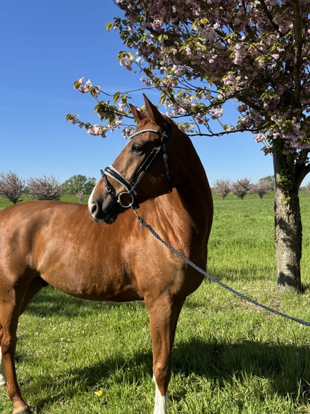Eleganter Hannoveraner Wallach Zum Verkauf steht ein beeindruckender Hannoveraner Wallach, geboren im Jahr 2019. Mit seinem ansprechenden Fuchs-Farbton und einer Größe von 172 cm ist er sowohl optisch als auch vom Format her ein echter Blickfang. Der gut-rittene Wallach überzeugt durch seine angenehme Grundausbildung und sein harmonisches Bewegungstalent. Der Wallach zeigt sich im Dressursport talentiert und zuverlässig. Seine Bewegungsqualität, insbesondere in den Grundgangarten, sowie seine Bereitschaft, Neues zu lernen, machen ihn zu einem vielversprechenden Partner für ambitionierte Reiter, die Wert auf eine solide Ausbildung legen. Dank seines ausgeglichenen Charakters ist er sowohl in der täglichen Arbeit als auch im Umgang äußerst angenehm. Dieses Pferd eignet sich hervorragend für Reiter, die auf der Suche nach einem zuverlässigen Dressurpartner sind, der sich in der Ausbildung weiterentwickeln möchte. Ein echtes Potenzial für die Zukunft – bereit, gemeinsam mit seinem neuen Reiter große Erfolge zu erzielen.