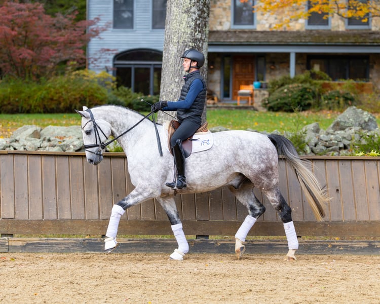 Aus sehr erfolgreichen Blutlinien stammt seine Halbschwester, Vianne, die 2023 bei den Ermelo YH Championships unter die besten Zehn kam und 2024 eine Medaille im Para-Dressur in Versailles gewann. Sir Render teilt ihr unerschütterliches Temperament. Mit soliden fliegenden Wechseln und Fortschritten in der Seitwärtsarbeit arbeitet er auf Starts der Klasse L (dritte Stufe) in der Wintersaison hin. Mehrere Siege auf A-Niveau (Training Level) und L-Niveau (First Level). Standort des Pferdes: USA Ein vollständiges Röntgenbild und eine tierärztliche Untersuchung sind verfügbar.
