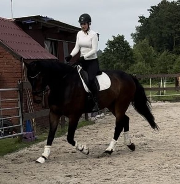 Con gran pesar, busco un nuevo hogar para mi caballo de 7 años, Rudi. Rudi es un auténtico caballo de corazón y un compañero para toda la vida. Es muy sociable, cariñoso y siempre quiere agradar a su jinete. En su manejo, es tranquilo, claro de mente y confiable, es apto para la ferrería, seguro en campo y siempre transmite una sensación de seguridad a su jinete. Incluso niños ya han montado a Rudi. Ha sido entrenado con mucha calma y sensibilidad, de manera suave, y ha sido promovido únicamente en el ámbito privado, ya que yo misma no soy una amazona de competición. Hasta hace poco, recibía clases regulares con una entrenadora que prepara hasta nivel Grand Prix, lo que le ha proporcionado una base de doma muy sólida. Tiene mucha calidad y claras ambiciones en la disciplina, y sin duda, potencial para tareas más exigentes. Además, posee buen talento para el salto. Disfruta mucho del trabajo en el suelo, y ya hemos comenzado con las primeras sesiones con la rienda de hocico. Rudi es muy sensato, motivado y honesto para su edad. Deseo para él un hogar amoroso donde pueda seguir siendo valorado y bien cuidado. No me resulta fácil tomar esta decisión, por lo que solo será entregado a las mejores manos. Incluido en el precio, se entrega un nuevo dressage saddle de Prestige, ajustado a la espalda de Rudi. Solo se vende junto con la silla. En 2019 se realizó una evaluación de salud precompra (AKU). Está sano.