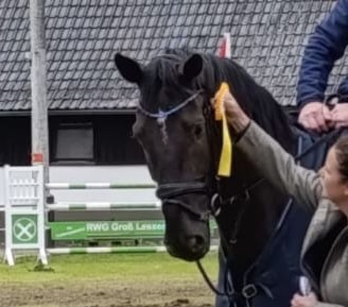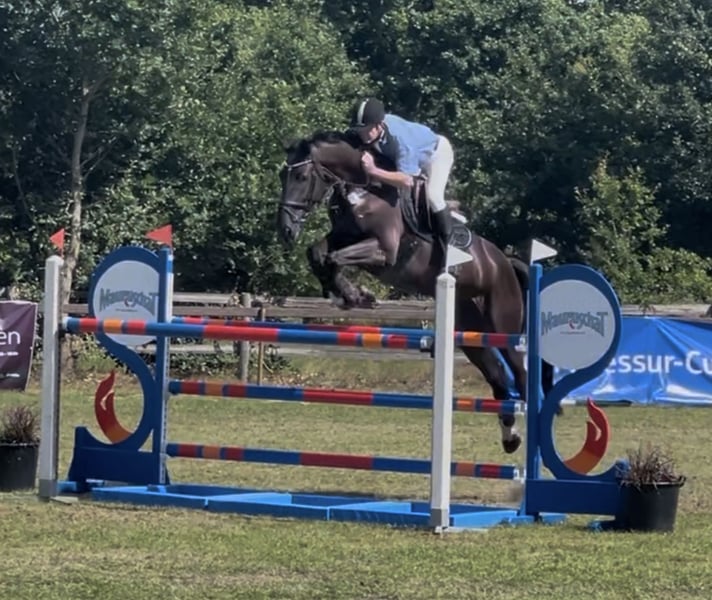 Il castrone di 7 anni, con pedigree di prima scelta, è stato allevato privatamente da noi, delicatamente messo in sella e, già a 4 anni, presentato con successo nelle prime gare di salto. Grazie alla sua buona maneggevolezza e alle ottime capacità di salto, offre al cavaliere una sensazione molto piacevole in sella e al salto, pensa con il cavaliere e desidera sempre fare la cosa giusta. Ha ottenuto diverse vittorie fino a gare di livello M* e piazzamenti fino a M**, ha superato con successo le sue prime gare di salto con punteggio S. Il castrone è molto docile in maneggio, al carico (treno o camion), dal ferratore e in gara – non si scalcia né si impenna, ed è un vero piacere lasciarlo rilassare, ad esempio, galoppando in mano sui campi di stoppie. A 7 anni, grazie alla sua buona voglia di lavorare, ha ancora ampio margine di miglioramento nelle tecniche di salto, ed è ideale sia per i cavalieri di salto che desiderano continuare a svilupparsi, sia come cavallo da competizione per amazzoni. Per un interesse serio, si prega di contattarci preventivamente tramite WhatsApp al numero indicato; vi richiameremo prontamente al telefono.
