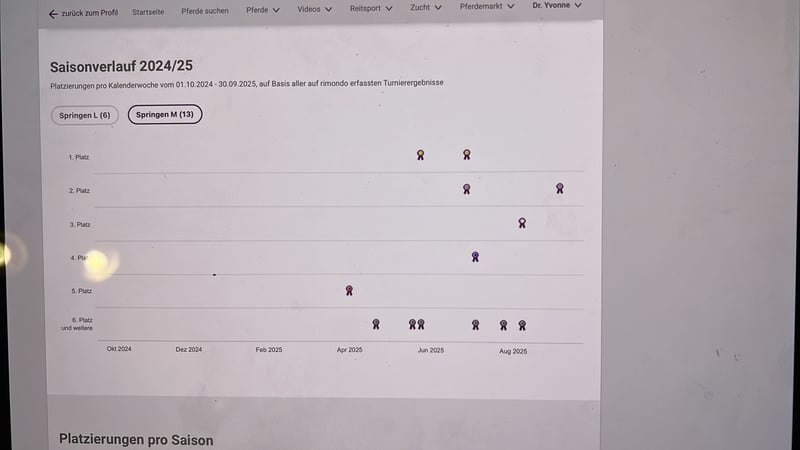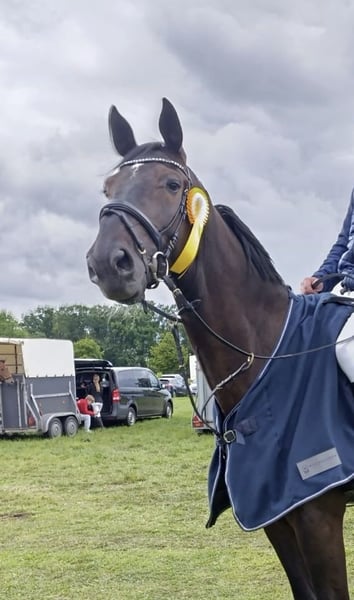 Yegua de 7 años con excelente linaje, criada en nuestra propia granja de manera privada, suavemente montada y presentada con éxito en sus primeras pruebas de salto a los 4 años. Gracias a su buena manejabilidad y gran talento para el salto, proporciona a su jinete una sensación muy agradable en la silla y al cruzar los obstáculos, piensa con su jinete y siempre quiere hacer lo correcto. Ha obtenido varias victorias hasta nivel M* y también colocaciones hasta nivel M**, además de haber completado con éxito sus primeras pruebas de salto con puntos en la categoría S. El caballo es muy tranquilo en el manejo, al cargarlo en remolque o camión, en la herrería y en competición; no se buckea ni se escapa y es un placer dejarse relajar, por ejemplo, trotando sobre campos de paja en paso largo. Con sus 7 años, aún tiene mucho potencial para mejorar en técnica de salto, gracias a su gran disposición para aprender. Es ideal tanto para jinetes de salto que quieran seguir desarrollándose como para amazonas que busquen un caballo de confianza. Para interés serio, por favor, contactarnos previamente por WhatsApp en el número proporcionado. Nos pondremos en contacto con usted de inmediato por teléfono.