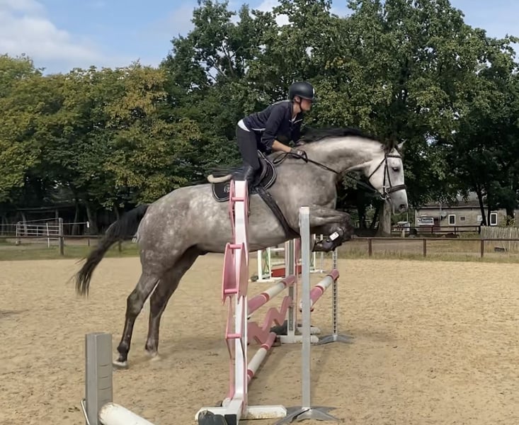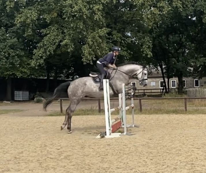 Ich verkaufe meinen selbstbezogenen 6-jährigen Hannoveranerwallach. Cavelli ist sehr brav und unkompliziert. Er wurde schonend angeritten und ausgebildet, er ist völlig unverbraucht. Er springt sicher einen A- Pacours und einzelne Sprünge auch schon höher. Beim Freispringen zeigt er viel Vermögen. Er geht gut alleine und in der Gruppe ins Gelände. Bei Interesse schicke ich gerne mehr Infos und Videos per WhatsApp.