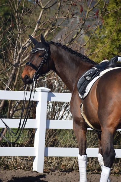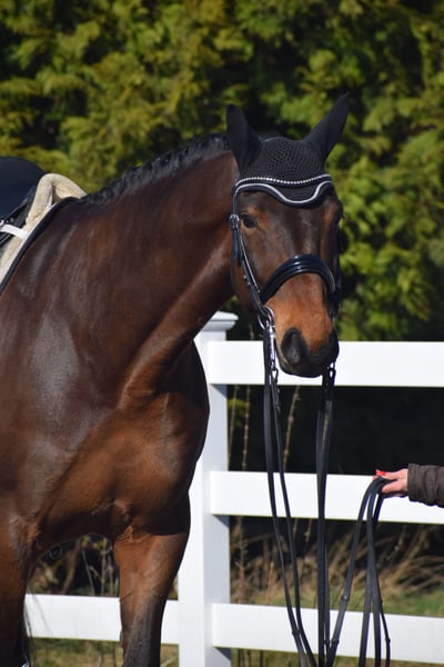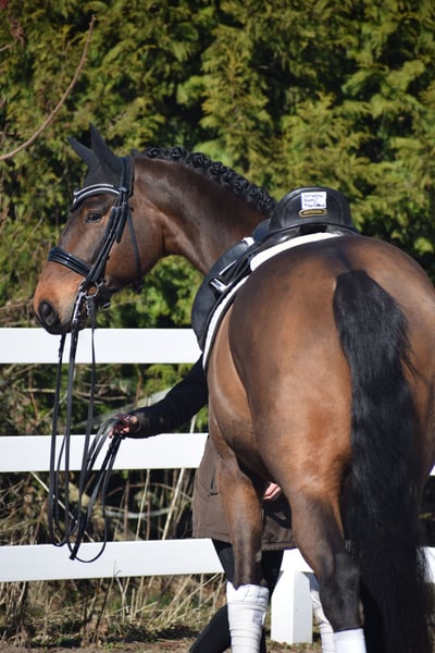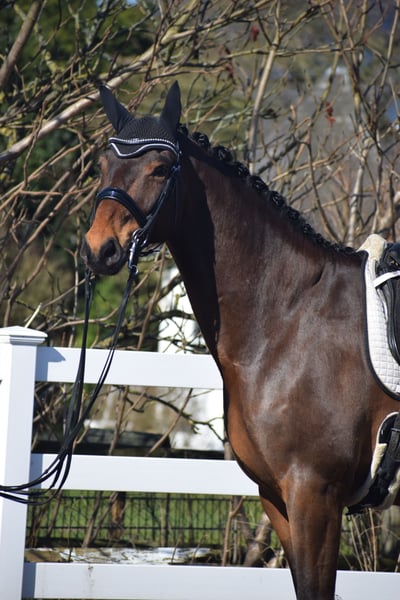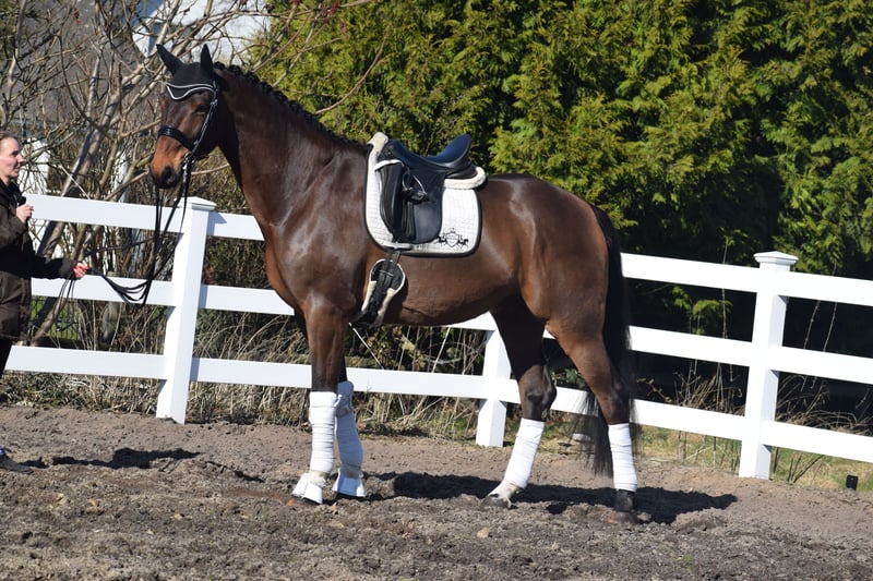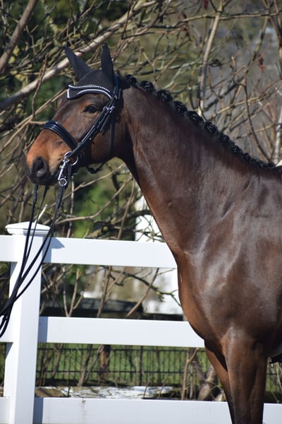 A Reliable Investment and Your Ticket for the FEI Small Tour / S* + S** / PSG + Inter I – Sport-Ready with Great Potential for Grand Prix Level – Suitable for Junior Riders! For sale, on behalf of the owner = breeder, is this impressive, 1.75 m tall, 2018-born (8-year-old) bay Hanoverian gelding by DON MARTILLO x SHERLOCK HOLMES. "Donizetti B" is an exceptional athlete and the perfect combination of power, elegance, and an invaluable character. He is a horse that captivates not only with his presence but also with a flawless competition record. If you are looking for a young horse with proven placings and wins, confidently competing at S-level and with the doors to Grand Prix wide open, this is your chance. SPORTING CAREER: A RECORD FILLED WITH SUCCESS The competitive history of "Donizetti B" is a testament to his quality and consistency. His achievements are thoroughly documented and demonstrate his class at every age: • Young Horse Successes: Placed high in dressage tests for young horses at Class A already at age 4, followed by wins in dressage tests for young horses at Class L as a 5-year-old. Additionally, placed in M-level dressage tests. The Path to the Grand Prix: • 6 years old (2024): Victory in a dressage test at Class M*. • 7 years old (2025): Placed in a Class M** dressage test. • Current training level: He is now firmly established at S** level (FEI Small Tour), making him the perfect partner for an ambitious sport rider. MOVEMENT QUALITY OF THE HIGHEST CLASS & FEI-READY Under saddle, "Donizetti B" demonstrates why he carries the genes of his world champion father, Don Martillo. He is a sport horse with genuine enthusiasm for competition: • Trot: Confidently supported by a well-angled, long-levered, active, and expressive hind leg with plenty of impulsion and shoulder freedom, ensuring self-carriage and an appealing side profile. • Canter: Uphill in build, with ample space and always in natural balance, showing high willingness to collect with a pronounced hind leg footfall. • Walk: Well-regulated, with plenty of rhythm and a good overtrack and clearance. • S** & Grand Prix Perspective: The movements of the Small Tour are well established and reliably performable. The readiness for piaffe and passage is already evident, making him a highly interesting investment for the path to the top levels. A CHARACTER OF GOLD – THE ROCK IN THE SURGE "Donizetti B" is a true gentleman and a real cuddle bug in handling, as well as a cool customer. • Fearless & Calm: In the competition arena, he is a rock-solid partner, performing his lessons with enthusiasm and focus, unaffected by external influences. This makes him the perfect partner for dressage – especially for juniors. • Excellent Junior Suitability: Despite his impressive size, he is a horse that provides confidence to his rider. He forgives mistakes, is easy to handle, and thanks to his excellent rideability, he is the ideal choice for ambitious young riders ready to start immediately in the Grand Prix. A PARTNER FOR LIFE "Donizetti B" is a true exceptional horse. He is an investment in the future, a sport horse with unlimited potential, and a best friend who will stand by his rider through thick and thin. If you are looking for a FEI Small Tour-ready young horse with maximum movement and an invaluable character, this bay will be your heart horse. A current, good clinical and radiological examination (standard + neck + back) is available. After purchase, "Donizetti B" would be very happy to remain with us in professional training for further development and competition, including international FEI events.