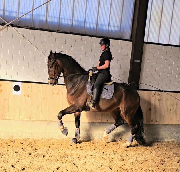 Dreamy gelding! Talented sport partner and friend for life. Ribbon collector and fun mobile. He possesses 3 above-average gaits. Outstanding, always absolutely rhythmical walk, which is not negatively influenced by his talent for piaffe/passage approaches. Elastic, body-swinging trot and uphill, ground-covering canter. He loads super and is a great partner both at competitions and for relaxing trail rides. He has the talent for high-level sport and a heart in the right place, making him great to ride for talented children as well. Currently placed in his first Dressage Horse M, he has already won at DrPf A and placed well at DrPf L. A true dream type with potential. Videos and more information gladly at: 0177 275 9886
