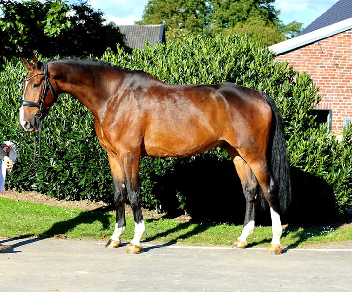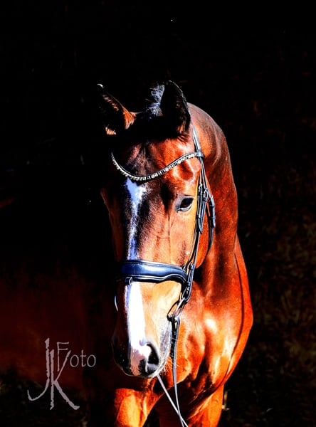 Wymarzony ogier! Utalentowany partner sportowy i przyjaciel na całe życie. Koneser śladów i wesoły kompan. Posiada ponadprzeciętne trzy wysokie GGA. Wybitny, zawsze absolutnie pewny krok, który nie jest negatywnie wpływany przez jego talent do Piaff/ Passage. Elastyczny, sprężysty chód, zakręcony przez ciało, oraz przestronny galop z podniesionym krokiem. Świetnie się go załadunku, a na turnieju, jak i podczas przejażdżek, jest wspaniałym partnerem. Ma talent do wielkiego sportu i serce na właściwym miejscu, dlatego świetnie radzi sobie także pod zdolnymi dziećmi. Wielokrotnie plasował się w konkursach ujeżdżeniowych kategorii M (był już zwycięzcą DrPf A, a w DrPf L był wysoko notowany). Obecnie jest przygotowywany do pierwszych startów w klasie Grand Prix. Prawdziwy typ marzeń z potencjałem. Filmy i więcej informacji chętnie pod numerem: 0177 275 9886