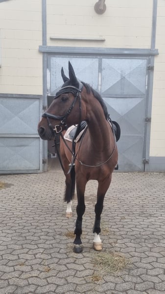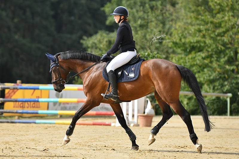 Aufgrund dessen, dass ich höhere Sportambitionen verfolge und ich weiß, dass Jonnie diesem Druck nicht gewachsen ist, suche ich nach langem Überlegen, ein 5* Zuhause bei einem ambitionierten Freizeitreiter/Wiedereinsteiger ohne Turnierambitionen. Auch als Jagdpferd ist er geeignet. Jonnie ist im Umgang und beim Reiter ein echter Schatz. Er geht gerne stundenlang ins Gelände und ist da in jeder Position, in jedem Tempo jederzeit händelbar. Aber auch bei der Arbeit im Viereck ist er immer entspannt und versucht alles richtig zu machen. Am Springen Zuhause und auf Lehrgängen hat er viel Freude. Motiviert zeigte er sich beim Geländetraining, wenn er genügend Zeit hat sich zu akklimatisieren. Egal ob beim Putzen, verladen oder beim Schmied, er ist immer ein Schatz und total verkuschelt. Er kennt Hunde, Kinder, Trecker und alles was auf einem Hof so anfällt. Weitere Fotos und Videos können auf Anfrage geschickt werden. Auch AKU/Röntgenbilder aus 2021 können eingesehen werden, diese waren ohne Befund. Fürs Probereiten nehme ich 30€ um Reittourismus zu vermeiden. Diese werden beim Kauf vom Preis abgezogen.