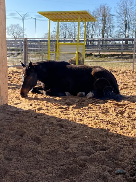 For sale is Rio, an absolute heart horse with a wonderful character! He has been in family ownership since he was 3 years old and has always been professionally cared for. However, he cannot withstand intense athletic stress and is now kept in an open stable. There, he proves to be very social, friendly, and affectionate! In handling as well as riding, he has always been well-behaved and obedient. He is sold exclusively to a good home and not for competitive purposes. However, he is still perfectly suitable for occasional trail riding and similar activities! He is sound and free of lameness but is currently not ridden due to lack of time. Priority goes to the best home, inquiries please contact +49 173 3081003.