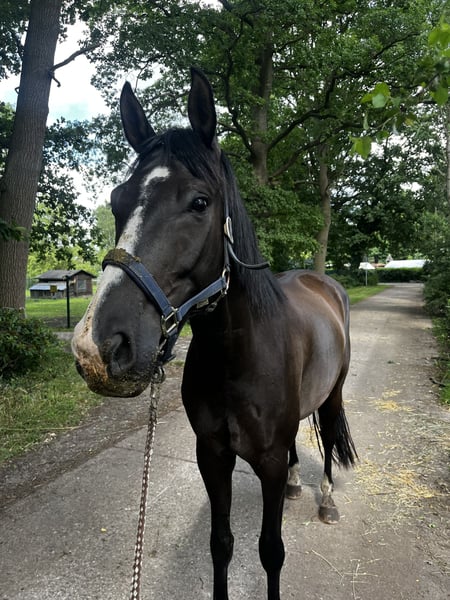Met pijn in het hart moet ik mijn 9-jarige Hannoveraanse ruin „Lamiro“ herplaatsen. Lamiro is ongeveer 166 cm hoog en stamt af van „LeVivaldi“. Hij is een echt hartendier en heeft veel meer aandacht nodig. In 2022 is bij Lamiro in de dierenkliniek Lüsche, tijdens een MRI, een bilaterale straalbeenvliesontsteking vastgesteld, evenals een ontsteking in het linker hoefgewricht. Deze is ter plaatse al behandeld. Na ongeveer anderhalf jaar rust op een weiland is Lamiro weer getraind. Helaas vertoont hij nog steeds pijnlijke gedragingen tijdens het rijden en soms lichte tijdelijke kreupelheid. Op dit moment is hij in draf kreupel. Mijn dierenarts heeft de nieuwe diagnose uit 2022 bevestigd. Lamiro is niet meer geschikt als rijpaard. Na genezing van de ontsteking kunnen wel stapritten mogelijk zijn. In het terrein is hij een betrouwbaar paard! Er is geen verdere diagnostiek uitgevoerd, daarom kan ik geen exacte uitspraken doen over de botstructuur of andere details. Lamiro kan echter pijnvrij in de wei of paddock staan en is in stap en, afhankelijk van de fase, vrij van kreupelheid in de andere gangen. Voor dit prachtige paard zoek ik een nieuw, 5-sterren thuis, omdat ik hem niet meer de aandacht kan geven die hij verdient! Ik stel me iemand voor die interesse heeft in grondwerk, circuslektionen of ontspannen stapritten. Hij zou ook een geweldig gezelschap kunnen zijn in een kudde. Lamiro is ’s nachts gewend aan boxen, maar ook 24/7 in een openstal te staan. Hij is absoluut sociaal en braaf met shoeren en laden. Momenteel is hij aan de voorzijde beiderzijds beslagen (wat ik ook zou blijven adviseren) en is regelmatig gevaccineerd. Dit is geen noodgeval! Handelaren en scholen worden niet in overweging genomen.
