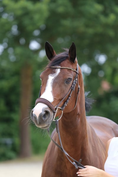 Zum Verkauf steht mein 9-jähriger Hannoveraner Wallach Carlsson (Abstammung: Cassus x Valentino). Carlsson überzeugt mit sehr viel Vermögen am Sprung und zeigt sich in der Dressurarbeit angenehm und unkompliziert. Er ist ein tolles Allrounderpferd, das sowohl im täglichen Training als auch in der Freizeit viel Freude bereitet. Er ist auf dem Turnier in Springprüfungen der Klasse A platziert und im Training bereits auf sicherem L-Niveau. Auch in der Dressur befindet er sich auf solidem A-Niveau und beherrscht einzelne Lektionen der Klasse L, wobei dies aufgrund seiner klaren Springveranlagung bisher nicht weiter gefördert wurde. Im Gelände ist er absolut zuverlässig: Er geht gerne alleine sowie in Begleitung ausreiten und zeigt sich dabei stets brav und ausgeglichen. Auch das Reiten ohne Sattel ist problemlos möglich. Carlsson ist ein sensibles Pferd, das einen Reiter benötigt, der ihm Sicherheit und Vertrauen vermittelt. Hat er dieses Vertrauen einmal gefasst, geht er mit seinem Menschen durch dick und dünn und macht alles mit. Im täglichen Umgang ist er ein absoluter Schatz: sehr verschmust, menschenbezogen und immer freundlich. Besonderheit: Carlsson geht aktuell nicht auf den Anhänger. Mit Geduld, konsequenter Bodenarbeit und/oder Unterstützung durch einen Verladetrainer ist dies sicherlich trainierbar, sollte aber berücksichtigt werden. Er ist kerngesund, war noch nie lahm und wird regelmäßig physiotherapeutisch behandelt. Carlsson wird schweren Herzens abgegeben, da ich ihm zeitlich nicht mehr gerecht werde. Er wird nur in gute, passende Hände verkauft. Bei ernsthaftem Interesse können Sie sich gerne unter 01715880812 melden.