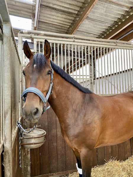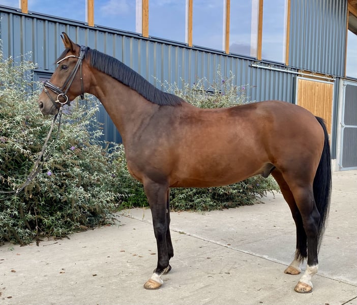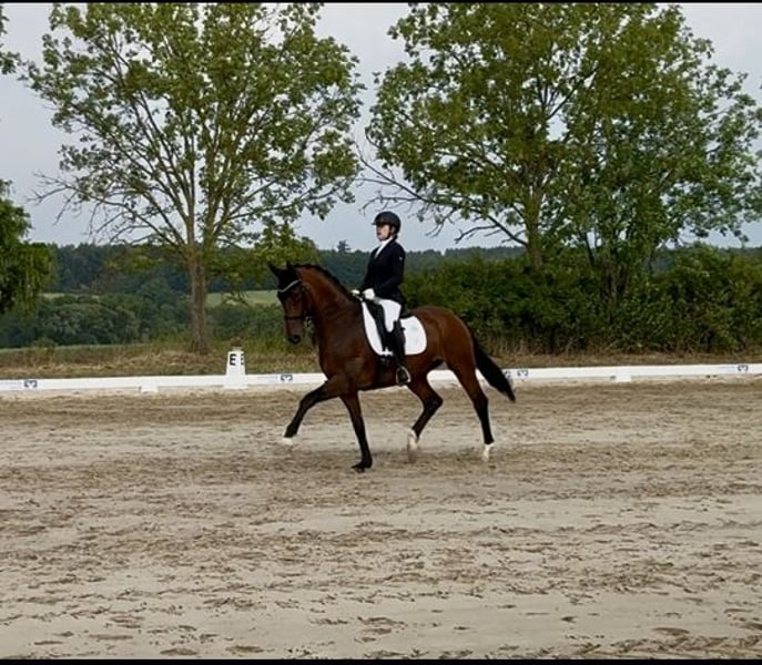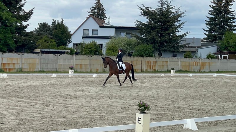 This 9-year-old dressage gelding, sired by Buckingham, impresses with his talent, charisma, and lovable character! He is trained up to the medium level, masters the movements very well, and has already placed at M level. Under saddle, he presents himself as light to ride and is equipped with plenty of go. Even outside the dressage arena, he is a true partner. Whether in the indoor arena, outdoor arena, or on trails, he brings joy everywhere and enjoys working. He is accustomed to daily turnout in a small herd, which is important for him. We wish for him a lovely home where he will continue to be developed and challenged! For further questions, please feel free to contact me at 015752833809.