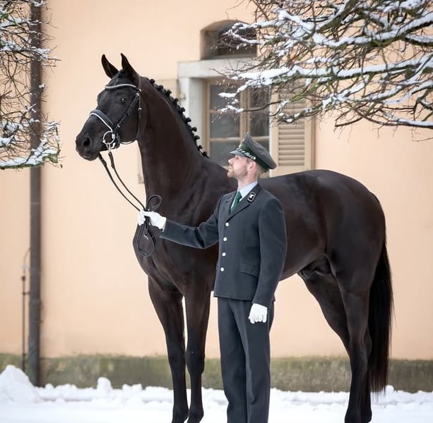 Zum Verkauf: Ein außergewöhnlich schöner schwarzer Hannoveraner Hengst von absoluter Spitzenqualität. Dieser beeindruckende Hengst fällt sofort durch seine tiefschwarze Farbe, seine elegante Ausstrahlung und seine harmonische, moderne Konstitution auf. Mit viel Adel, Ausdruck und einem korrekten Fundament erfüllt er höchste Ansprüche in Bezug auf Exterieur und Bewegungsqualität. Er verfügt über drei überdurchschnittliche Grundgangarten mit viel Elastizität, Kraft und natürlicher Aufwärtsbewegung. Der Schritt ist sauber und weit, der Trab elastisch mit viel Schulterfreiheit und Abdruck, und der Galopp kraftvoll, gut gesprungen und perfekt im Gleichgewicht. Seine Bewegungen sind leichtfüßig, fließend und zeugen von natürlicher Selbsthaltung. Auch vom Charakter her ist dieser Hengst eine absolute Bereicherung. Er ist arbeitswillig, ehrlich und äußerst zuverlässig, mit einer feinen Einstellung und ausgeglichenem Temperament. Im täglichen Umgang zeigt er sich menschenbezogen, freundlich und leicht zu handhaben. Sowohl unter dem Sattel als auch in der Box ist er brav und angenehm im Umgang. Der Hengst ist korrekt und altersgerecht ausgebildet, lernt schnell und besitzt eine hervorragende Arbeitseinstellung. Er ist geeignet für den ambitionierten Reiter, der ein Sportpferd mit Qualität sucht, aber auch für den Reiter, der ein stilvolles und zuverlässiges Pferd für Freizeit oder leichte Turnierreiterei wünscht. Vollständig gesund. Ein aktueller, ausführlicher veterinärmedizinischer Untersuchungsbericht liegt vor, inklusive aktueller Röntgenaufnahmen. Keine bekannten veterinärmedizinischen Besonderheiten; korrekt gestellt und von starker, langlebiger Gesundheit. Ein Pferd für den echten Liebhaber – mit Ausstrahlung, Qualität und viel Zukunftsperspektive. Weitere Informationen, Videos sowie eine Besichtigung oder Proberitt sind auf ernsthafte Anfrage möglich.