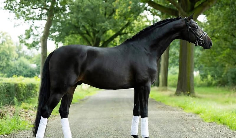 Dieses außergewöhnliche schwarze Dressurpferd vereint Eleganz, Kraft und Rittigkeit auf höchstem Niveau und ist der ideale Partner für ambitionierte Reiter mit Zielen im gehobenen Dressursport. Mit einem harmonischen, gut proportionierten Körperbau beeindruckt das Pferd durch seine natürliche Präsenz, einen edlen Kopf mit ausdrucksstarken Augen sowie einen optimal angesetzten, schön aufgewölbten Hals, der fließend in eine starke, elastische Oberlinie übergeht. Die Bewegungsqualität ist herausragend: drei überdurchschnittliche Grundgangarten mit viel Takt, Elastizität und Ausdruck. Der Schritt ist klar und raumgreifend, der Trab überzeugt durch Kadenz, Schwung und eine beeindruckende Bergauftendenz, während der Galopp durch Balance, Versammlungsfähigkeit und mühelose Regulierung besticht. Damit bringt das Pferd beste Voraussetzungen für Lektionen der schweren Klasse mit, einschließlich Versammlung, Seitengängen und ausdrucksstarken Verstärkungen. Besonders hervorzuheben ist die hervorragende Arbeitseinstellung. Das Pferd zeigt sich stets motiviert, lernwillig und aufmerksam. Es steht fein an den Hilfen, ist angenehm in der Anlehnung und überzeugt durch seine natürliche Fähigkeit zur Versammlung. Sein ausgeglichenes, freundliches Wesen macht es sowohl unter dem Sattel als auch im täglichen Umgang zu einem verlässlichen Partner. Selbstverständlich liegen vollständige, aktuelle und einwandfreie Röntgenbilder sowie umfassende tierärztliche Untersuchungsberichte vor, die die Gesundheit und Belastbarkeit dieses Pferdes bestätigen. Es sind keine gesundheitlichen Einschränkungen oder Unarten bekannt. Ob als zukünftiges Grand-Prix-Pferd oder als verlässlicher Sportpartner auf gehobenem Niveau – dieses beeindruckende schwarze Dressurpferd bietet eine seltene Kombination aus Schönheit, Leistungsbereitschaft und geprüfter Gesundheit und stellt somit eine hervorragende Investition für den anspruchsvollen Dressurreiter dar.