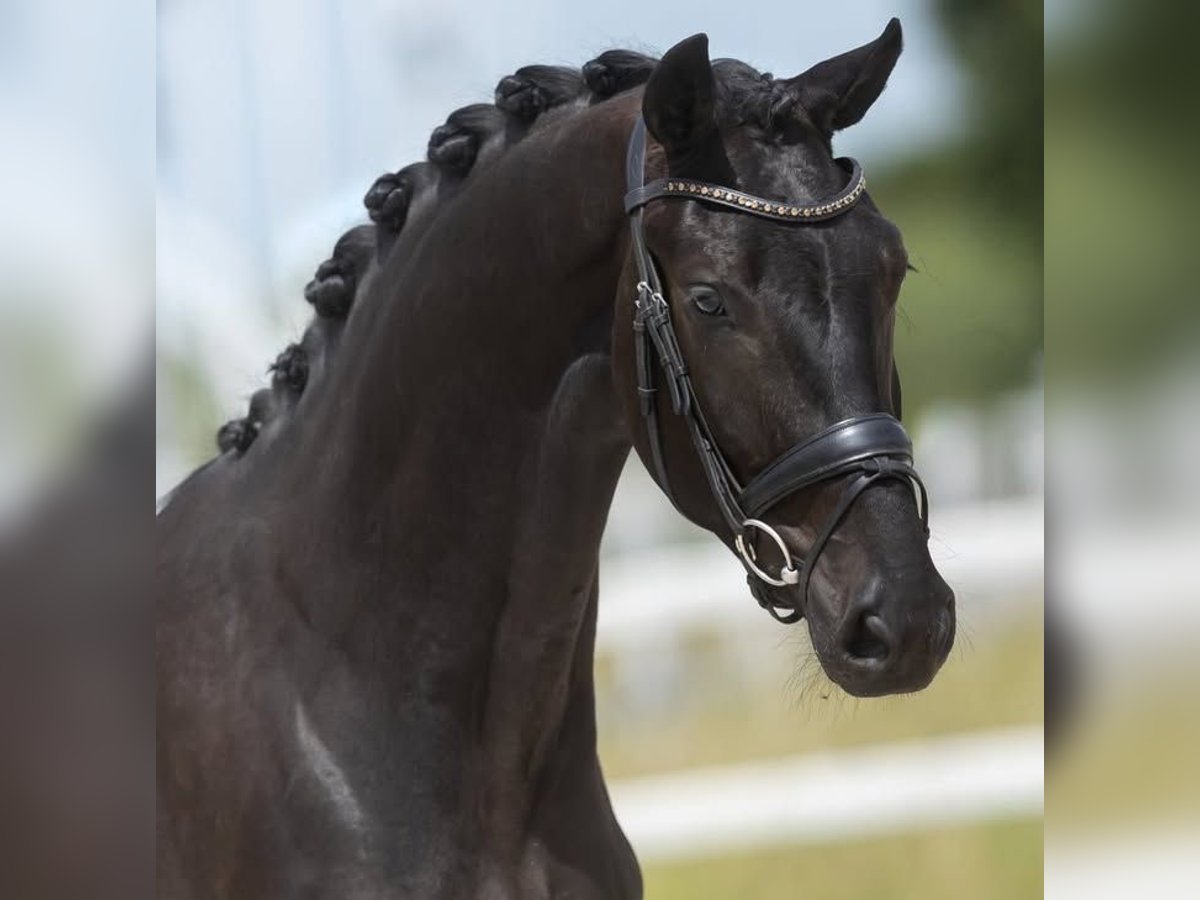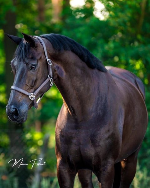 We offer for sale a stunning black Hannover stallion, impressive in presence and sporting quality, ideal for advanced show jumping and dressage. Bred according to the high standards of the Hannoveraner Verband, this horse represents the excellence of modern German breeding. Standing approximately 16.1 hh, he features a harmonious build, a strong and well-muscled topline, and correct, solid limbs. His expressive head, long, inclined shoulder, and powerful hindquarters give him elegance, balance, and excellent pushing power. Show Jumping: In the ring, he demonstrates remarkable power, impeccable technique, and quick reflexes. He jumps with excellent use of the back, good bascule, and great attention to the obstacle. His canter is energetic, uphill, and easily adjustable—an essential trait for tackling demanding classes. He maintains focus, courage, and a winning mentality even in highly competitive environments. Dressage: Under saddle, he performs with three high-quality gaits. The walk is broad and regular, the trot elastic with notable freedom of the shoulder, and the canter is collected, powerful, and well-balanced. He shows a natural aptitude for collection, lightness in the hand, and excellent willingness to work, making him competitive even in advanced dressage tests. In terms of temperament, he is balanced, cooperative, and rider-oriented. In daily management, he is easy and reliable: accustomed to transport, the blacksmith, and competitions, where he behaves impeccably. A recent comprehensive veterinary report is available, including an in-depth clinical examination. Updated radiographs (including back and neck) are also available, with no pathological findings. He is regularly vaccinated and undergoes periodic health checks, presenting in excellent health and physical condition. A complete horse of rare elegance and talent, ready to fulfill the ambitions of a demanding rider seeking success in both show jumping and high-level dressage.