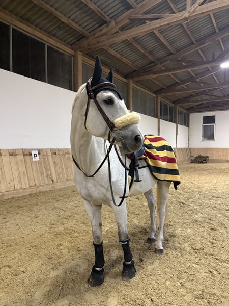 Hannoverian Gelding – Ideal for ambitious riders! This stunning grey, born in 2016, impresses with its noble appearance and excellent jumping abilities. Standing at 16.1 hh, he offers the perfect size for active riders who value quality and a willingness to perform. The Hannoverian gelding impresses with his jump-oriented temperament, eagerness to learn, and friendly nature. He is well-trained, reliable in the show jumping arena, and always shows joy in jumping. A versatile partner for the competitive rider or the ambitious leisure rider looking to develop their skills further. Please feel free to contact me for more information or if you are interested.