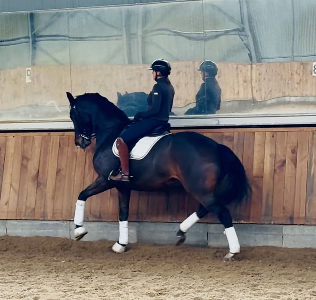 Ich biete einen eleganten Dressur-Wallach zum Verkauf an. Er hat bis zur Klasse C an Turnieren teilgenommen und befindet sich derzeit im Training auf Klasse CC. Er buckelt nicht, steigt nicht ab, ist nicht temperamentvoll und leicht zu handhaben. Er geht auch ins Gelände. Gesund, unfallfrei. Aktuelle Röntgenuntersuchungen vorhanden. Sensibel auf Hilfen, gut reitbar und lernt schnell.