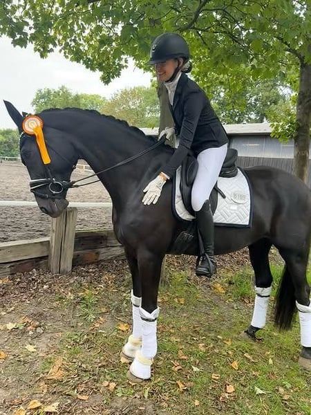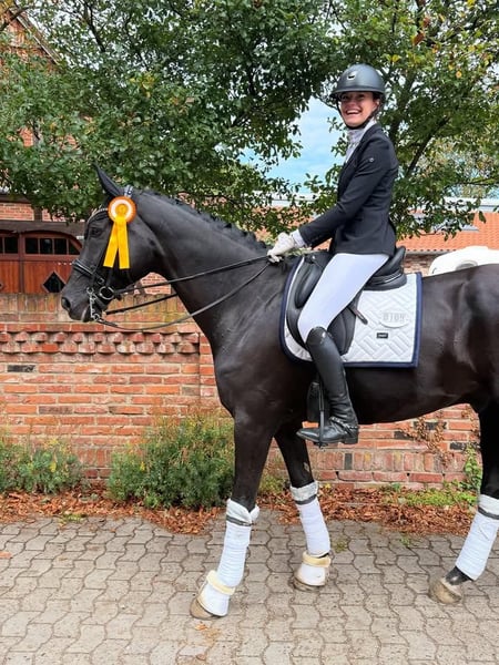 A stunning black Hanoverian gelding, ideally suited for advanced show jumping and dressage. This elegant horse impresses with his striking appearance, athletic build, and expressive, elastic movements. An impressive, deep black Hanoverian gelding with exceptional presence and charisma. His elegant, harmoniously conformed body is complemented by a noble, expressive head and large, alert eyes. With a powerful hind leg, excellent balance, and natural collection ability, he demonstrates great talent for the demands of high-level dressage. His movements are lively, elastic, and characterized by remarkable lightness – especially in the trot, where he impresses with scope and cadence, while his canter is uphill and powerful. At the same time, he possesses great agility and caution over fences, making him well-suited for demanding show jumping. This elegant horse captivates with his impressive appearance, athletic stature, and expressive, elastic movements. With plenty of scope at the jump, excellent technique, and great caution, he shows significant talent in the show jumping arena. He also has three very good basic gaits, full of impulsion, balance, and rhythm – ideal qualities for further dressage training. The gelding is completely healthy, motivated, and consistently eager to work. His very clean X-ray results highlight his excellent physical condition. This gelding is sensitive to aids, eager to learn, and performance-oriented. He is an ideal partner for experienced riders seeking a horse for advanced dressage and show jumping. A true eye-catcher with a sportive heart and excellent prospects for a successful future in the arena and over fences.