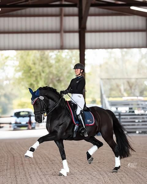 For sale: a stunning black Hanoverian gelding that immediately captures attention with his natural elegance, presence, and modern conformation. This horse perfectly combines power, suppleness, and intelligence, making him an ideal partner for a rider aiming to excel in both advanced dressage and show jumping. This gelding boasts a beautiful deep, glossy black coat, a noble and expressive head carriage, and a lively, attentive eye. His conformation is harmonious and athletic: a well-sloped shoulder promoting freedom of movement, a strong, well-supported back, and a powerful hindquarters that enable him to develop propulsion and balance. His limbs are correct, and his solid build ensures excellent durability for sport. His three natural gaits are of high quality: - Walk: expansive, regular, and relaxed, with good engagement of the hind legs. - Trot: expressive and elastic, with plenty of engagement and a good freedom of the shoulders. - Canter: powerful, balanced, and uphill, particularly suitable for dressage work and jumping courses. Under saddle, this gelding demonstrates a great willingness to work and excellent responsiveness to aids. In dressage, he already shows solid foundations in collection work and technical exercises, while maintaining suppleness and cadence. In show jumping, he is courageous, respectful of the rails, and possesses good jumping technique, with a nice trajectory and an excellent sense of distance. In daily life, he is pleasant, balanced, and easy to handle. He enjoys human contact and adapts well to a regular training routine. He is accustomed to stable life with turnout in paddocks or pastures and behaves very well during transport, at the farrier, and during veterinary care. Health status: The horse is in very good physical condition and benefits from rigorous veterinary monitoring. Recent veterinary examination: a comprehensive clinical assessment has been performed recently, confirming his excellent general health. Radiographs: a complete and recent radiographic file is available, showing satisfactory results without significant orthopedic abnormalities. Health care: vaccinations, deworming, and dental care are up to date. This magnificent Hanoverian gelding offers a rare opportunity for a rider seeking an elegant, versatile, and talented horse capable of performing at an advanced level in dressage and show jumping. Further information, videos, pedigree, veterinary reports, and radiographs can be provided upon request.
