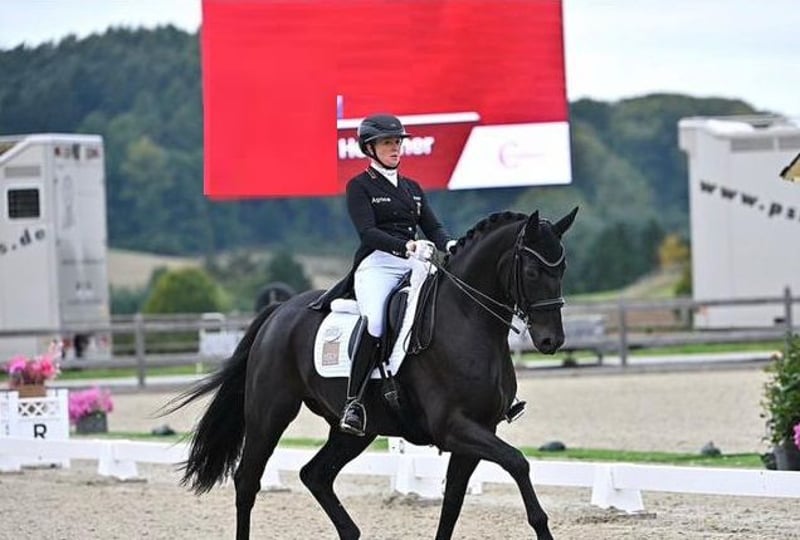 Zum Verkauf steht ein wunderschöner schwarzer Hannoveraner Hengst, der sofort durch seine natürliche Eleganz, Präsenz und sein modernes Erscheinungsbild ins Auge fällt. Dieses Pferd vereint perfekt Kraft, Flexibilität und Intelligenz, was es zu einem idealen Partner für einen Reiter macht, der sowohl im anspruchsvollen Dressur- als auch im Springreiten weiterkommen möchte. Der Hengst besitzt ein tiefschwarzes, glänzendes Fell, einen edlen und ausdrucksvollen Kopf sowie einen lebhaften, aufmerksamen Blick. Sein Körperbau ist harmonisch und sportlich: eine gut geneigte Schulter, die die Bewegungsfreiheit fördert, ein stabiler, gut gestützter Rücken sowie eine kräftige Hinterhand, die ihm Antrieb und Balance verleiht. Seine Bewegungsgrundlagen sind korrekt, und seine solide Knochenstruktur sorgt für eine ausgezeichnete Langlebigkeit im Sport. Seine drei natürlichen Grundgangarten sind von ausgezeichneter Qualität: Schritt: breit, gleichmäßig und entspannt, mit guter Aktivität der Hinterbeine. Trab: ausdrucksstark und elastisch, mit viel Engagement und schöner Schulterfreiheit. Galopp: kraftvoll, ausgeglichen und aufwärts gerichtet, besonders geeignet für die Dressurarbeit sowie für Springparcours. Unter dem Reiter zeigt dieser Hengst eine große Arbeitsbereitschaft und eine hervorragende Reaktionsfähigkeit auf die Hilfen. Im Dressurviereck beweist er bereits solide Grundlagen im Sammeln und in technischen Übungen, wobei er gleichzeitig Flexibilität und Takt bewahrt. Im Springen zeigt er Mut, Respekt vor der Stange und eine gute Springtechnik, mit einer schönen Linienführung und einem ausgeprägten Gespür für die Distanzen. Im Alltag ist er angenehm, ausgeglichen und leicht zu handhaben. Er schätzt den Kontakt zu Menschen und passt sich gut an eine regelmäßige Trainingsroutine an. Er ist an das Leben in der Stallhaltung gewöhnt, mit Ausläufen im Paddock oder auf der Weide, und verhält sich beim Transport, beim Schmied sowie bei tierärztlichen Behandlungen sehr brav. Gesundheitszustand: Das Pferd befindet sich in hervorragender körperlicher Verfassung und wird regelmäßig tierärztlich betreut. Aktueller tierärztlicher Befund: Eine umfassende klinische Untersuchung wurde kürzlich durchgeführt, die seinen ausgezeichneten Allgemeinzustand bestätigt. Röntgenaufnahmen: Ein vollständiger, aktueller Röntgenbefund liegt vor und zeigt zufriedenstellende Ergebnisse ohne bedeutende orthopädische Auffälligkeiten. Gesundheitsmanagement: Impfungen, Wurmkuren und Zahnbehandlungen sind auf dem neuesten Stand. Dieser prächtige Hannoveraner Hengst stellt eine seltene Gelegenheit für einen Reiter dar, der nach einem eleganten, vielseitigen und talentierten Pferd sucht, das sowohl im fortgeschrittenen Dressurtraining als auch im Springen überzeugen kann. Weitere Informationen, Videos, Pedigree sowie die tierärztlichen Berichte und Röntgenbilder können auf Anfrage bereitgestellt werden.