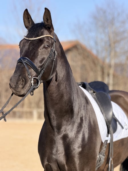 Large-frame dressage gelding with excellent bloodlines – ideal for ambitious leisure riders We are offering a 9-year-old, large-frame gelding by Royal Highness out of Florestan x Landadel. He is currently competing at solid M-level in dressage and provides a very good foundation for further development. Under saddle, he presents himself as athletic, balanced, and easy to control. He also easily handles small jumps, making him a versatile partner. In the field, he proves to be reliable and calm – a pleasant companion outside the arena as well. His most notable trait is his strong, affectionate nature. He is very cuddly, friendly in handling, and enjoys daily attention. Occasionally, he can show a bit of temperament, but always remains clear-headed and manageable. An ideal horse for ambitious leisure riders seeking a large, loving, and characterful partner for daily work and relaxed rides.