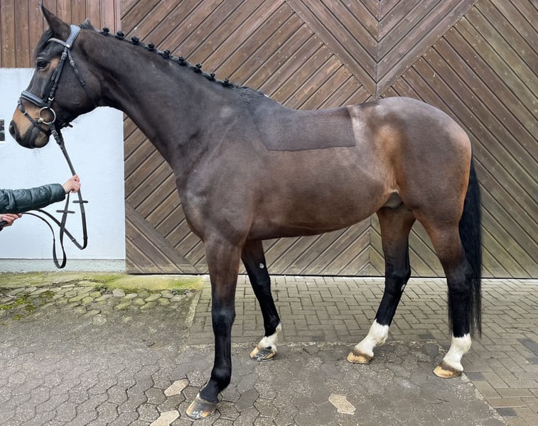 For sale is an elegant Hanoverian gelding with a dark bay coat, born in 2017. Standing at an impressive 17.5 hands, he presents a striking appearance. The gelding has a solid training up to class L. He has achieved over 10 placements and wins in competitions at that level. He is attentive and consistently demonstrates a positive attitude towards training. He has been x-rayed. “Famolo” has successfully undergone a throat operation as well as an eye surgery. Therefore, he is offered at a below-market price! We are happy to provide more information and arrange a viewing by phone.