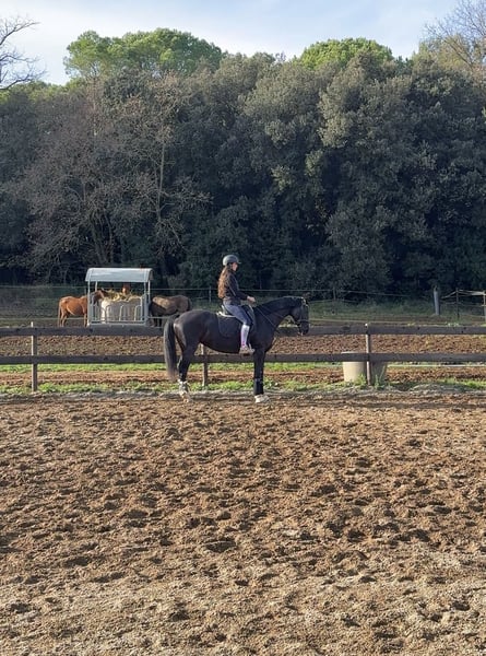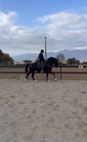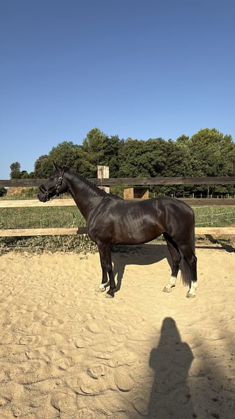 Yegua de doma classica de raza hannoveriana con unos buenos movimientos para la disciplina. Yegua ya pisetada fuera de casa y lista para emezar la temporada 26 en recordidos de doma classica a nivel territorial y nacional. Tambien saltando facil hasta 1,10cm i recoridos a 80/90cm. No solo destaca por su belleza y movimientos sino tambien por su buen linaje com nombres en si carta como De Niro - Dancier - Donnerhall entre otros. Responde muy bien a las ayudas y aprende rapido en el mundo de la doma. Tiene ejercicios mas complejos como cambios de mano simple, piruetas (paso/galope), apoyos pendientes de confirmar. Ejercicios confirmados espalda dentro, grupa debtro, espalda fuera, cesiones, transiciones parada-trote, torte-parada, paso-galope y viceversa. Se disponen de videos y mas informacion. NO LLAMADAS!