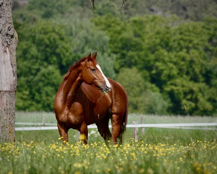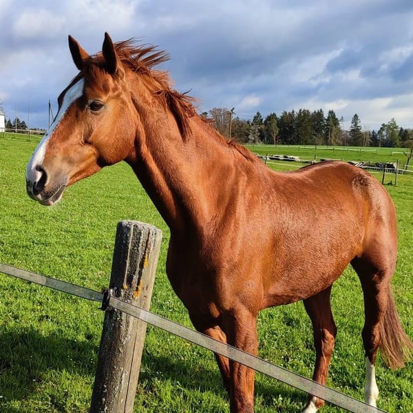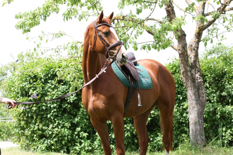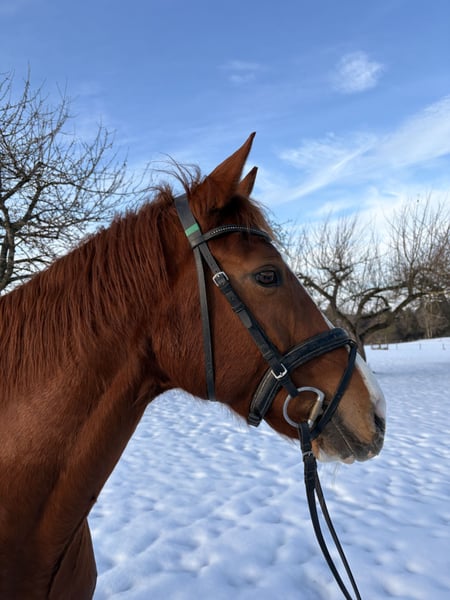 We are selling our well-behaved mare due to lack of time. Embassina is healthy, athletic, and currently underchallenged :) She is a 10-year-old Hanoverian mare, currently competing at A-level, and has participated in several small competitions. At six years old, she competed in L-level eventing but was not further trained in that discipline. Last year, she had a wonderful foal and has proven to be an excellent broodmare and mother. Recently, she has been ridden extensively in lessons and taken on trail rides with young riders. She is very reliable, motivated, and always manageable. We see her as an ideal partner for ambitious leisure riders who enjoy trail riding and dressage. Unfortunately, she is less enthusiastic about jumping and can get stressed in that discipline. She loves cross-country jumping and free jumping, which she does confidently. She is very well-behaved away from home, easy to load and farrier-friendly, and very friendly and gentle in handling. She is shod four times a year, has excellent hooves, and generally good health. She appears healthy and well-rounded on hay, straw, and mineral feed. Currently, she stays in an indoor box at night and is turned out in a mixed group during the day. We could also consider a quiet pasture with a run-in shed, provided she has a comfortable resting place. This is a truly lovely, sweet dream horse, and we are reluctant to part with her :) There are two minor issues: she tends to crib in her box (which does not affect her health) and has a sarcoid, which does not impair her and causes no problems.