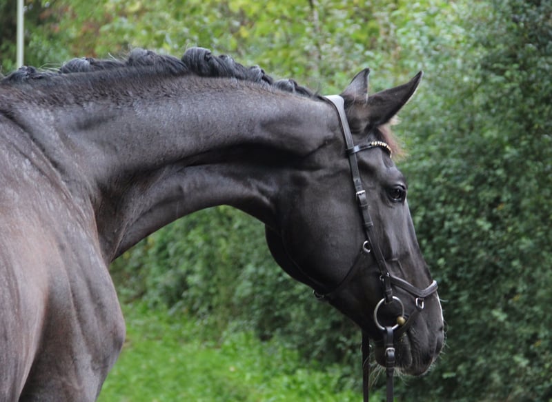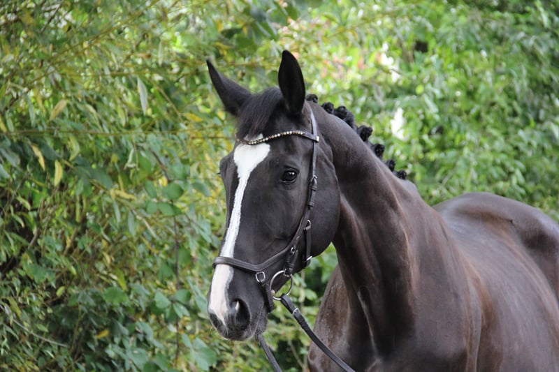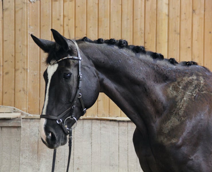 Diese tiefschwarze Schönheit mit vier weißen Beinen und markanter Blesse ist nicht nur optisch ein absoluter Hingucker – mit ihrer Präsenz zieht sie alle Blicke auf sich. Doch ihre wahre Stärke liegt in ihrem ruhigen, klaren Wesen: Sie überzeugt durch ihre Zuverlässigkeit, ihre Gelassenheit in jeder Situation und ihre offene, unerschrockene Art – auch in fremder Umgebung zeigt sie sich stets souverän und findet sich schnell zurecht. Die 10-jährige Stute (ca. 1,75 m) zeigt sich unter dem Sattel leicht in der Anlehnung, fein zu reiten und beeindruckt mit überaus starkem Schwung, klarer Bergauftendenz und drei ausdrucksstarken Grundgangarten. In der Dressur ist sie auf L-Niveau ausgebildet und lässt großes Potenzial für eine weiterführende Förderung erkennen. Sie erfordert dabei korrektes Reiten und wünscht sich einen erfahrenen Reiter, der ihr Potenzial weiter fördert und sie mit Gefühl arbeitet. Auch Stangen oder kleine Sprünge nimmt sie mit Freude, wurde darin jedoch bisher nicht gezielt gefördert. Ihre wahre Begabung liegt eindeutig in der Dressur, wo sie mit Ausdruck, Rittigkeit und Potenzial begeistert. Dabei bringt sie auf dem Papier alles mit: Mit ihrer Abstammung von Rotspon x Der Lord vereint sie Leistung und Rittigkeit auf eindrucksvolle Weise – eine Abstammung, die sich sehen lassen kann und ihre Qualität unterstreicht. Aufgrund dessen ist sie auch für die Zucht interessant. Ob auf dem Platz, im Gelände oder einfach beim täglichen Umgang – diese Stute macht einfach Freude. Sie ist unerschrocken, schmiede- und verladefromm und präsentiert sich als echter Allrounder, der mit seiner positiven Arbeitseinstellung täglich begeistert. Da sich unsere privaten Umstände verändern, suchen wir für Roxy ein liebevolles und passendes Zuhause. Bei ernsthaftem Interesse senden wir gerne Videos vom Reiten sowie aus ihrem Alltag zu. Ein Probereiten ist nach Absprache möglich (Kostenbeteiligung 20 €).